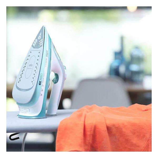 Утюг Braun SI5017GR, зеленый обладает мощностью 2700 Вт, за счет чего быстро нагревается и быстро устраняет складки на тканях любых типов. Пар подается со скоростью до 50 г/мин, в особенно сложных случаях выручает паровой удар силой 190 г/мин.