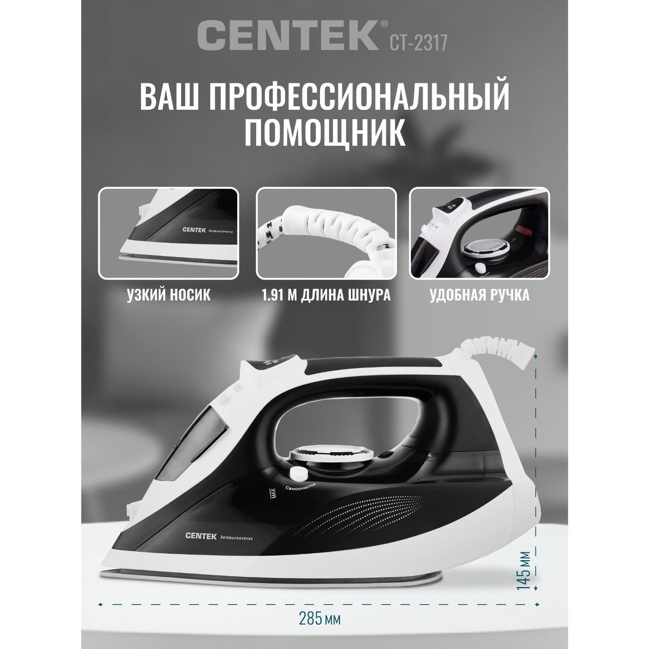 Вы можете купить Утюг Centek CT-2317 Black в магазинах М.Видео по доступной цене. Утюг Centek CT-2317 Black: подробное описание, фото и отзывы реальных покупателей, характеристики, возможность скачать инструкции и подобрать аксессуары.