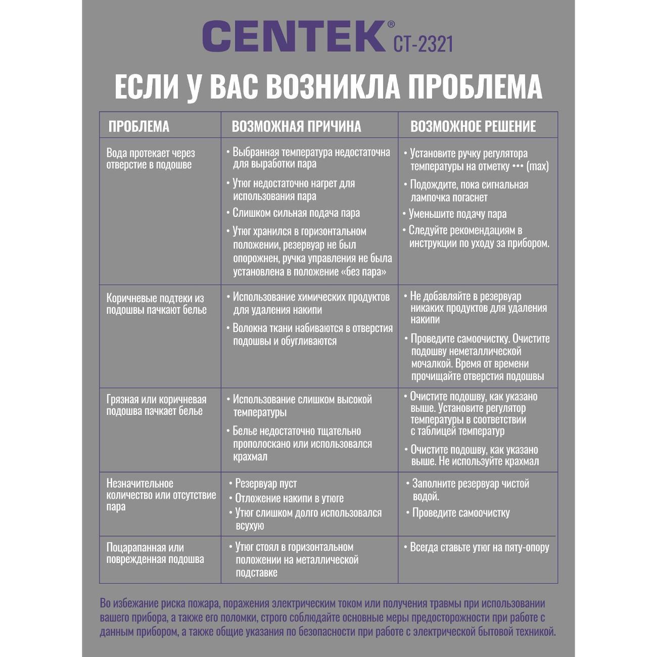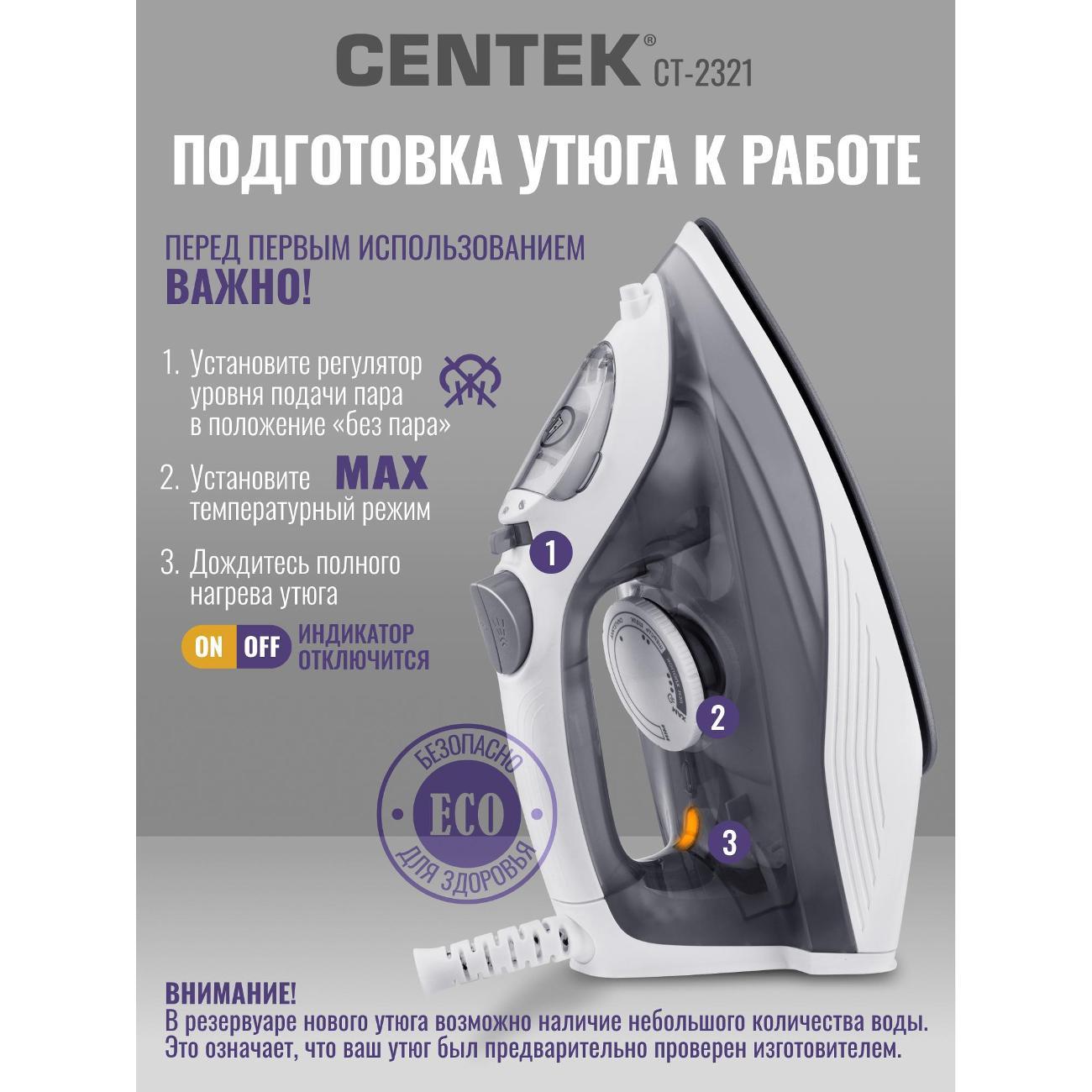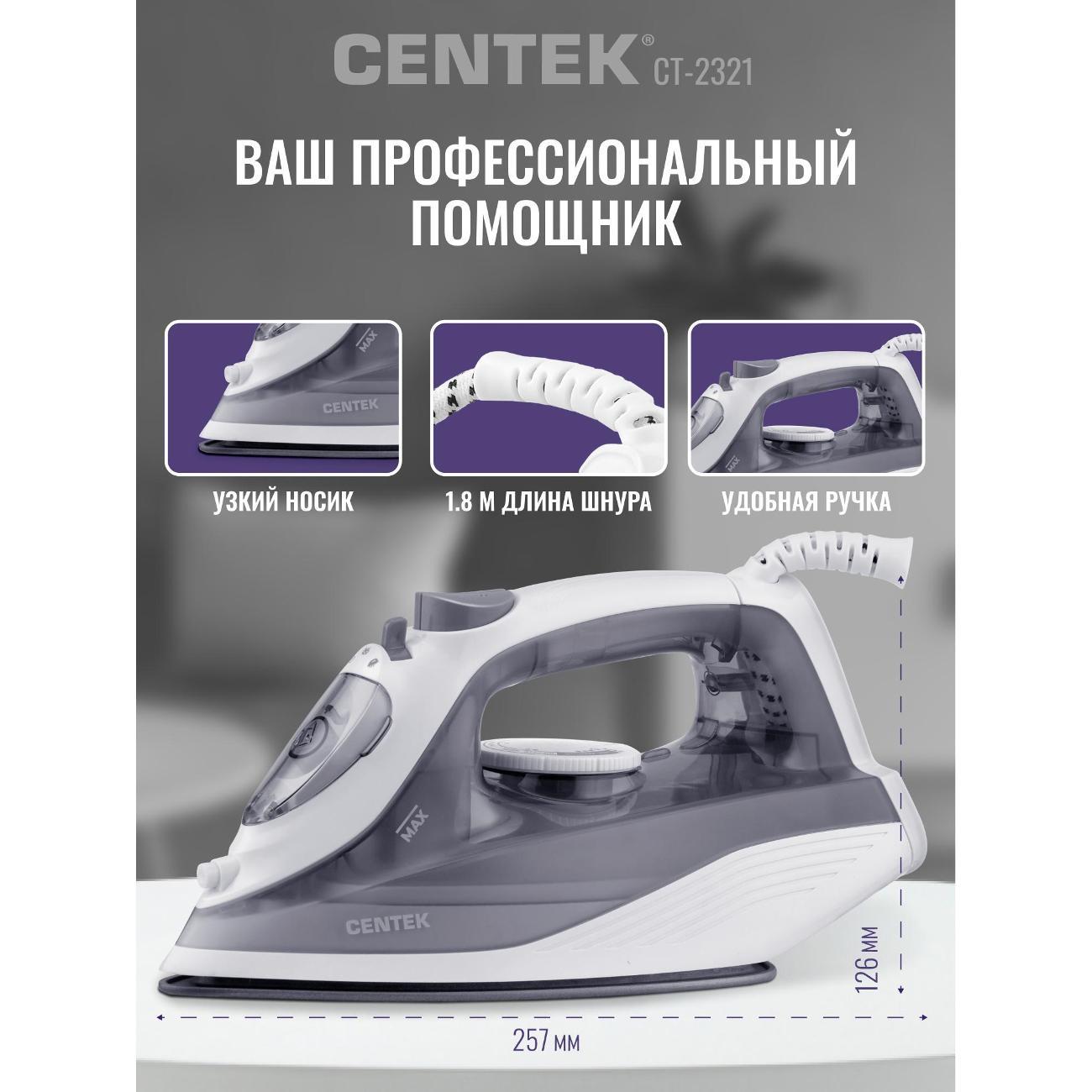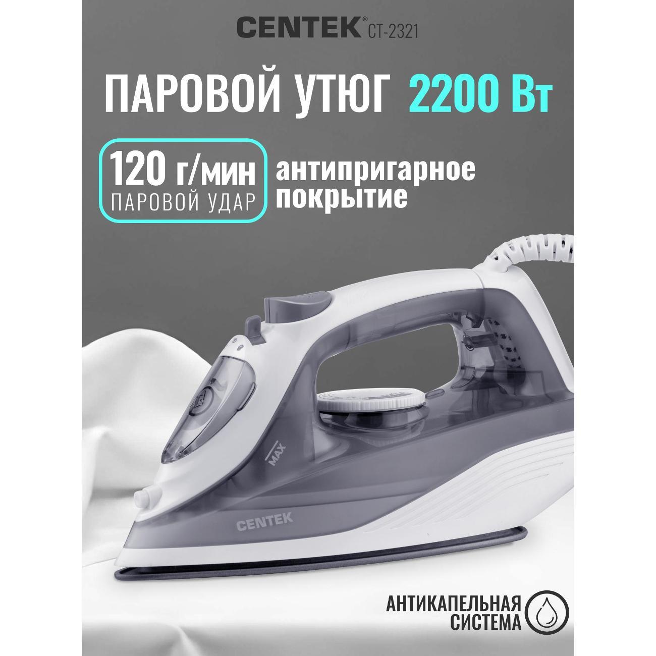 Вы можете купить Утюг Centek CT-2321 Grey в магазинах М.Видео по доступной цене. Утюг Centek CT-2321 Grey: подробное описание, фото и отзывы реальных покупателей, характеристики, возможность скачать инструкции и подобрать аксессуары.