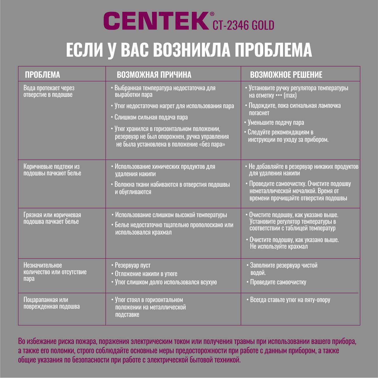 Сделайте выбор в пользу качества и элегантности — выберите Centek CT‑2346 для безупречного глажения каждый день!