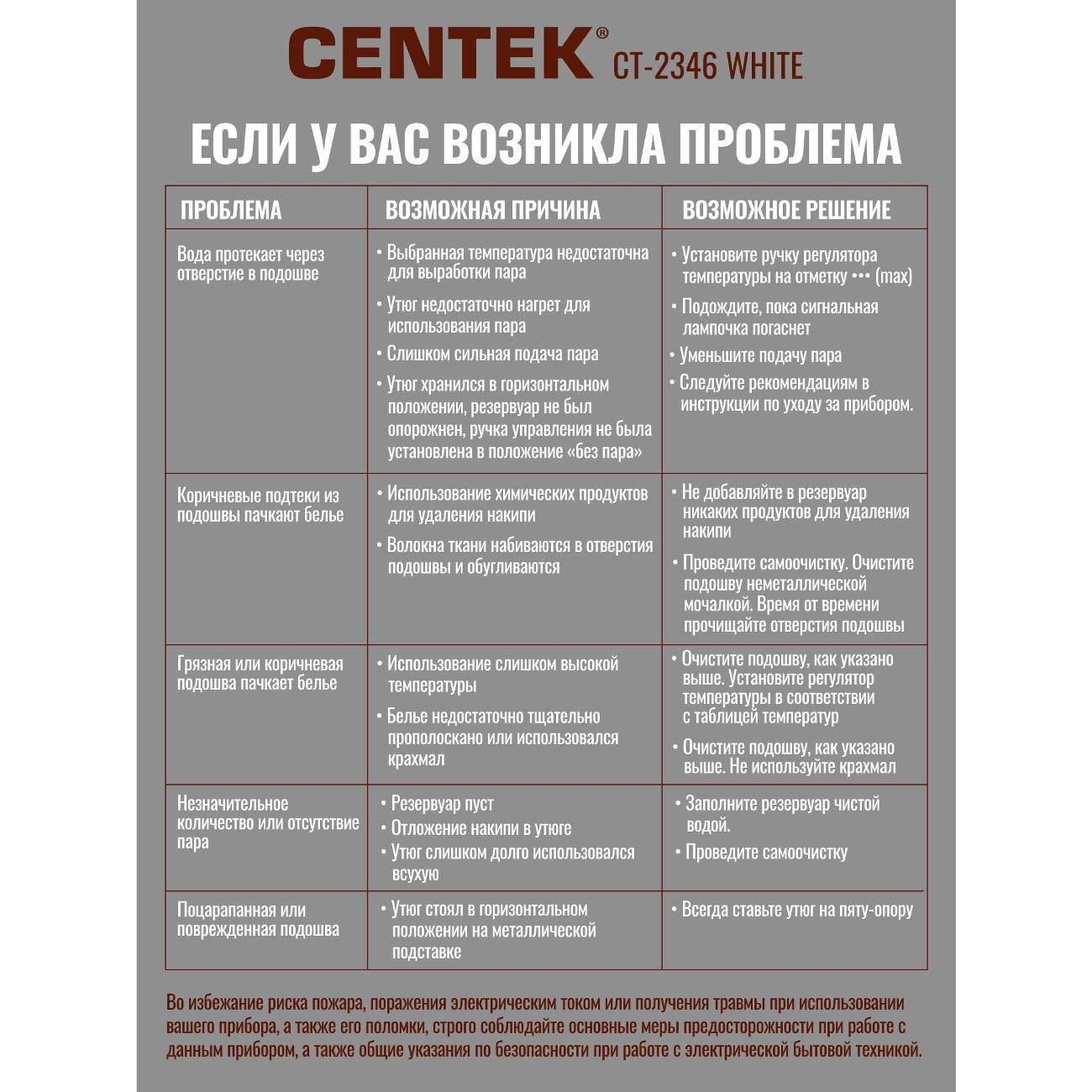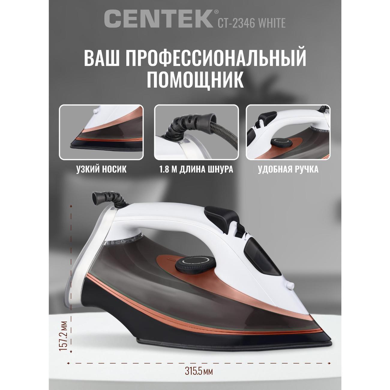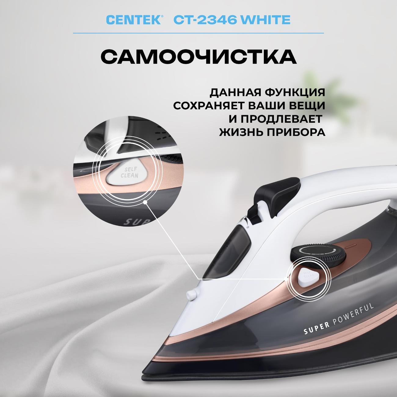 Вы можете купить Утюг Centek CT-2346 White в магазинах М.Видео по доступной цене. Утюг Centek CT-2346 White: подробное описание, фото и отзывы реальных покупателей, характеристики, возможность скачать инструкции и подобрать аксессуары.