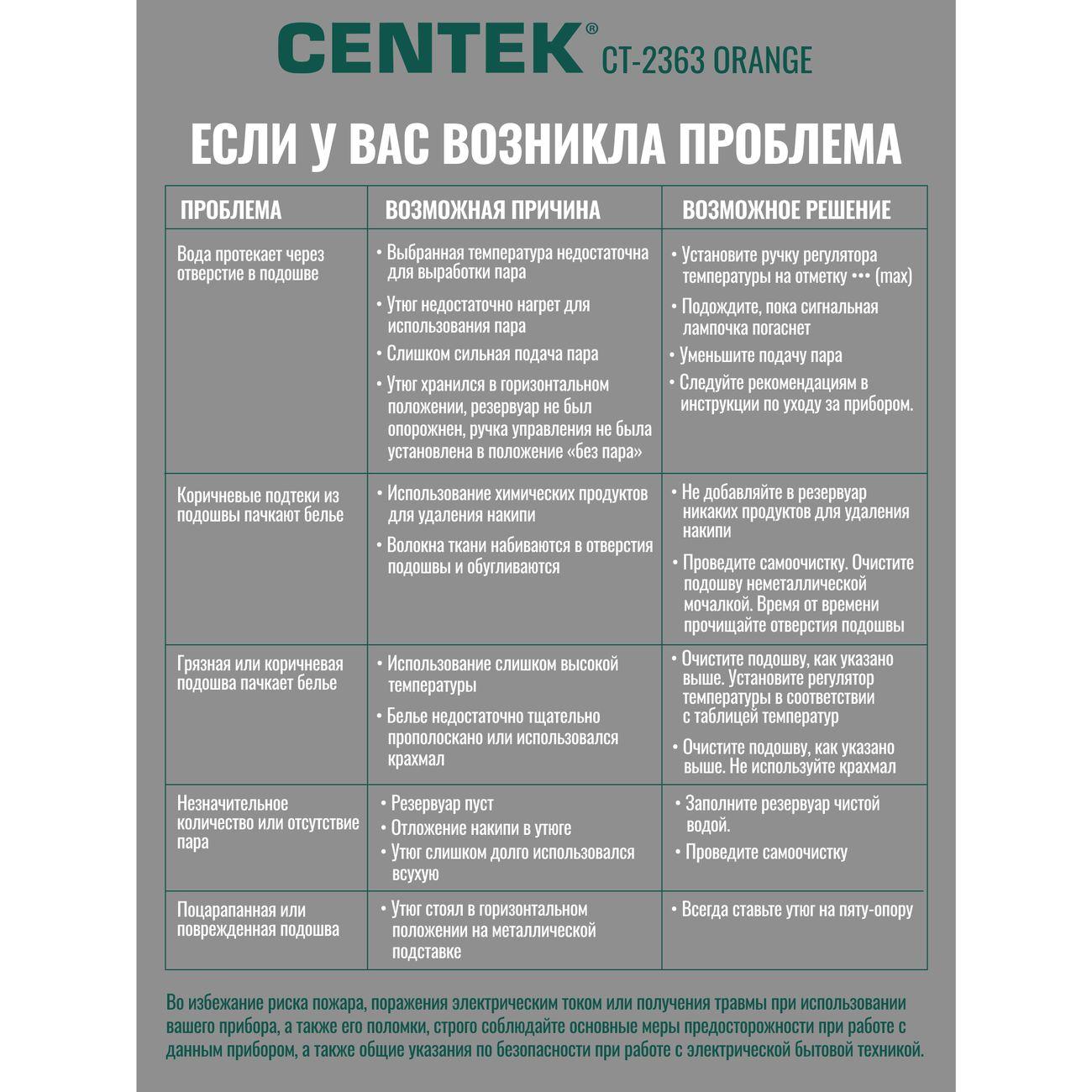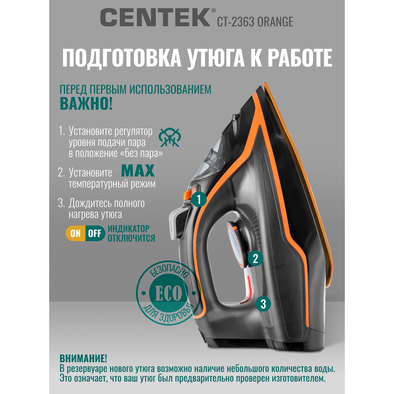 Вы можете купить Утюг Centek CT-2363 Orange в магазинах М.Видео по доступной цене. Утюг Centek CT-2363 Orange: подробное описание, фото и отзывы реальных покупателей, характеристики, возможность скачать инструкции и подобрать аксессуары.