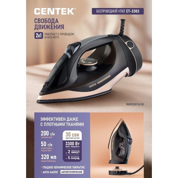 Вы можете купить Утюг Centek CT-3303 в магазинах М.Видео по доступной цене. Утюг Centek CT-3303: подробное описание, фото и отзывы реальных покупателей, характеристики, возможность скачать инструкции и подобрать аксессуары.