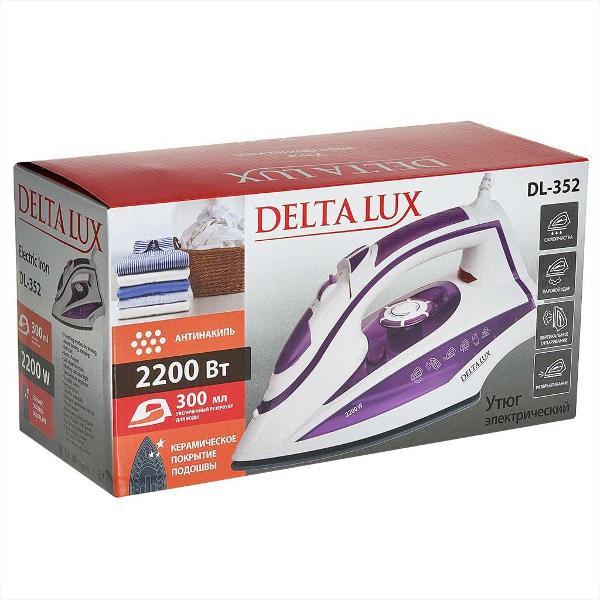 Вы можете купить Утюг Delta Lux DL-352 в магазинах М.Видео по доступной цене. Утюг Delta Lux DL-352: подробное описание, фото и отзывы реальных покупателей, характеристики, возможность скачать инструкции и подобрать аксессуары.