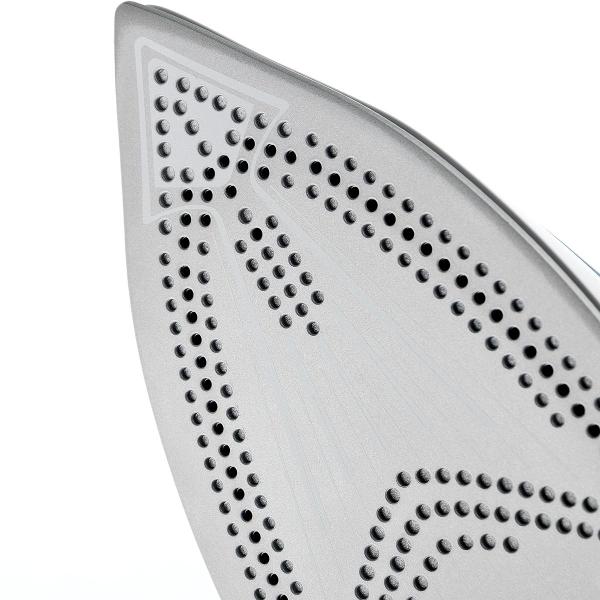 Прибор работает в трех режимах, которые выбираются с помощью поворотного плавного регулятора. На ручке размещены кнопки для разбрызгивания и принудительной подачи пара. Мощность утюга — 2200 Вт, длина сетевого кабеля — 1,75 м. За счет шарнирного соединения шнур не скручивается во время глажки.