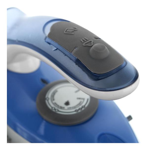 Утюг снабжен световыми индикаторами включения и готовности к работе. Объем резервуара для воды составляет 60 мл. Ручка складывается, шнур длиной 1,8 м оснащен шарнирным креплением, предотвращающим спутывание. В комплекте поставляется стаканчик для залива воды. Вес утюга составляет 800 г.