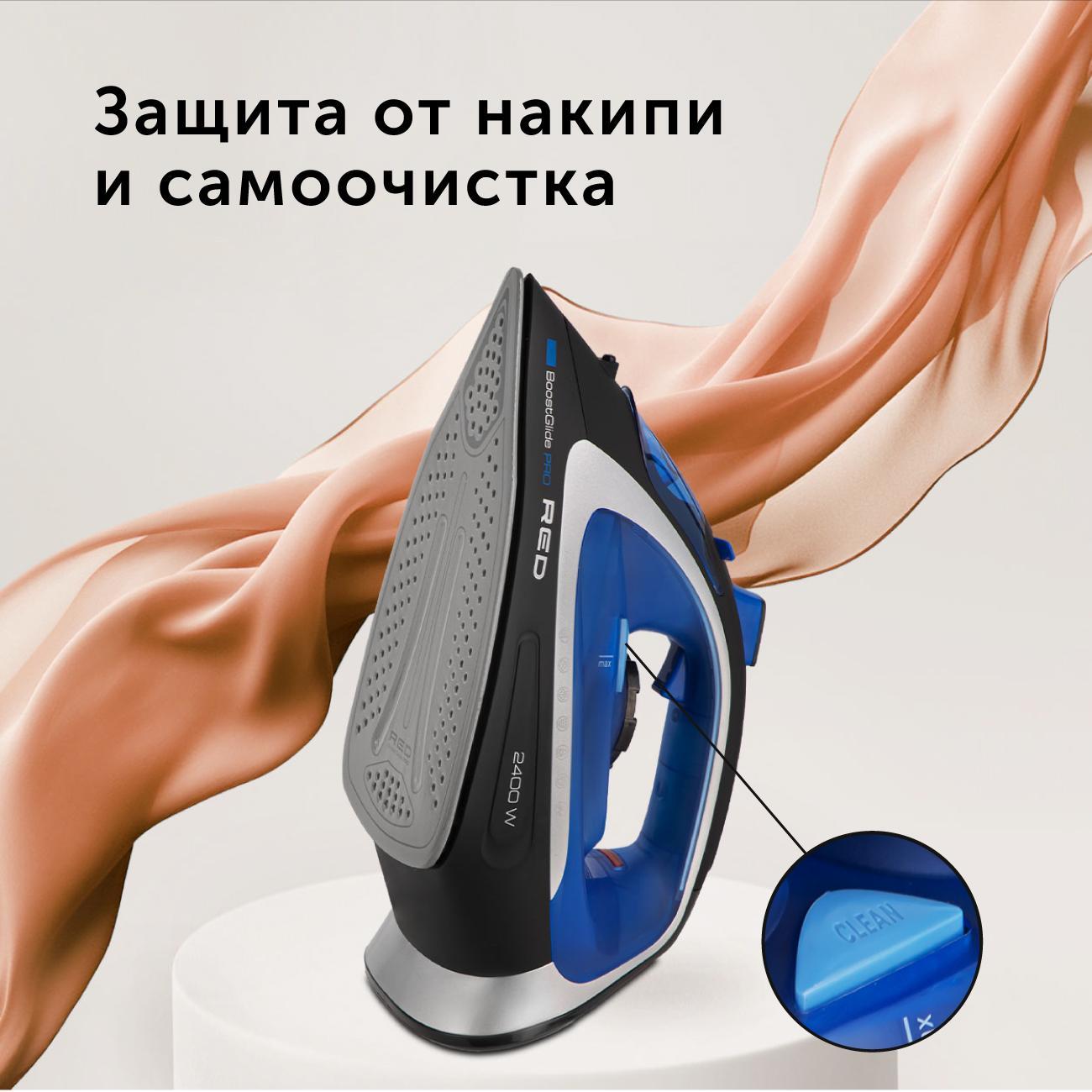 В этой модели реализована технология самоочистки от накипи. При перегреве устройство автоматически отключается. Потребляемая мощность составляет 2400 Вт. Кабель длиной 3 м позволяет с комфортом гладить одежду на удалении от розетки.