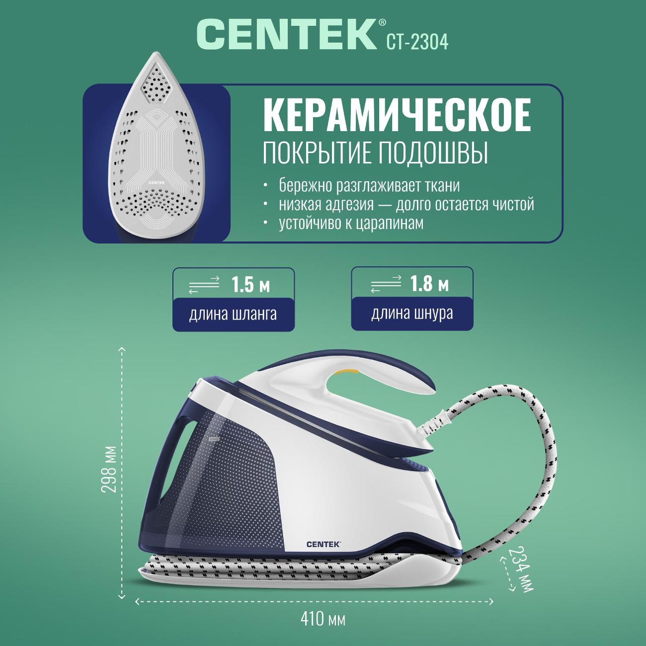 Вы можете купить Утюг с парогенератором Centek CT-2304 в магазинах М.Видео по доступной цене. Утюг с парогенератором Centek CT-2304: подробное описание, фото и отзывы реальных покупателей, характеристики, возможность скачать инструкции и подобрать аксессуары.