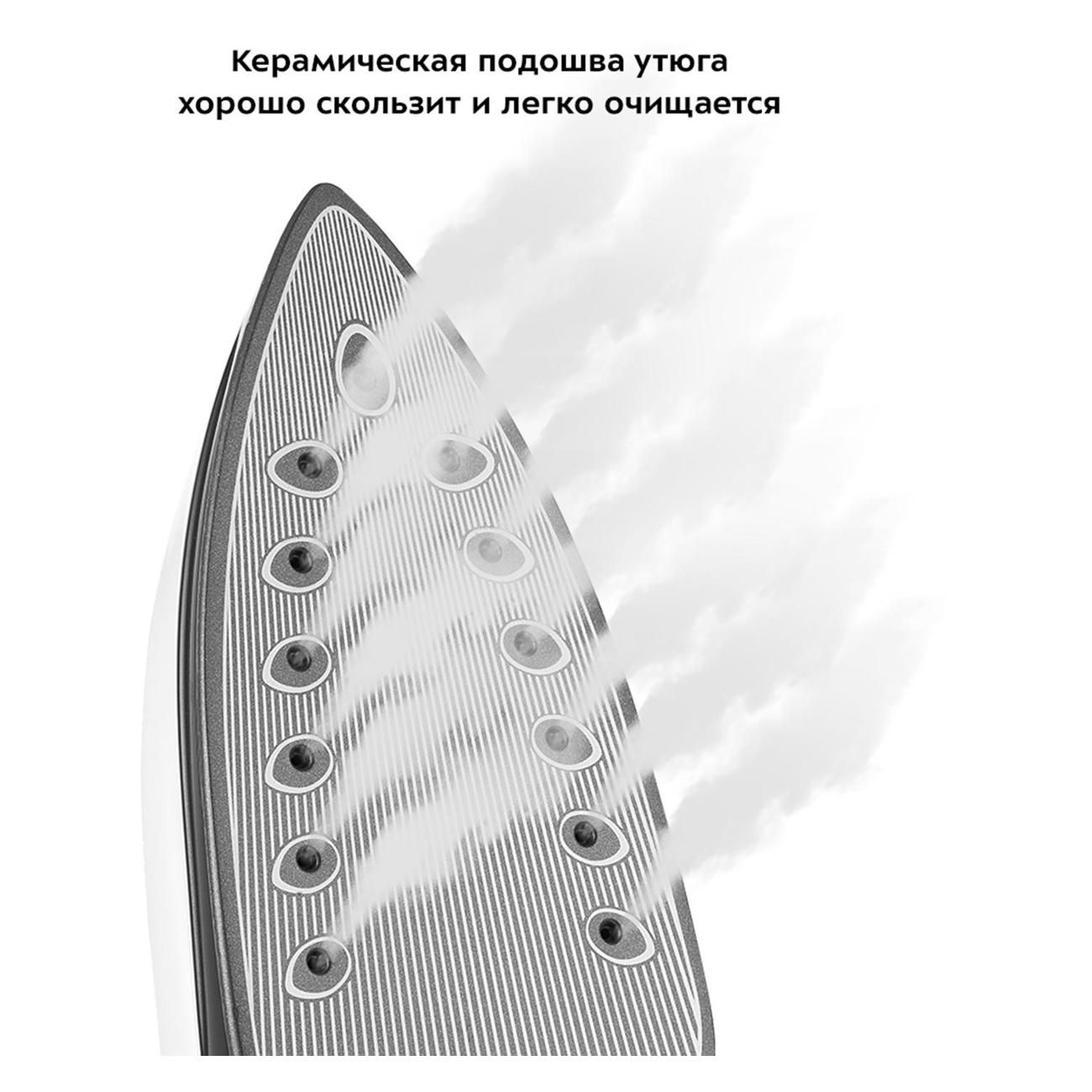 Комплект состоит из подставки для утюга и фильтра для воды. Длина парового шланга составляет 1,1 м. Форма корпуса позволяет для компактности хранения наматывать шланг на него.
