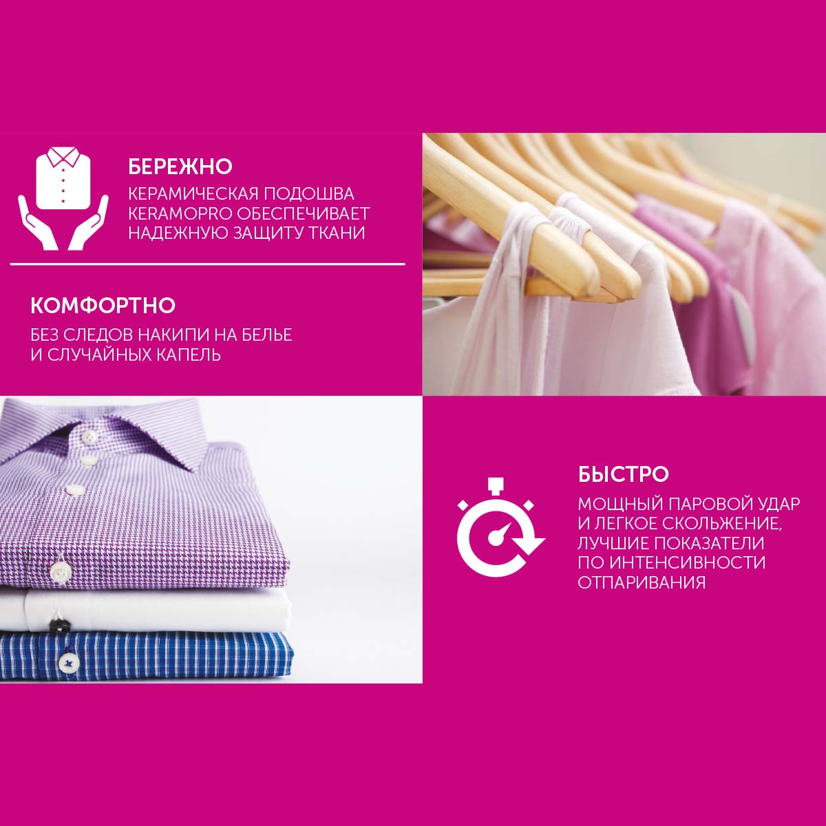 Прекрасный бюджетный вариант без всяких лишних наворотов. Гладит легко, отпаривает отлично,но только вещи из тонкого материала, а с плотными не хватает мощности. А в целом свои функции выполняет.