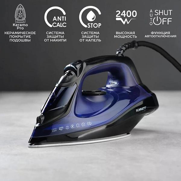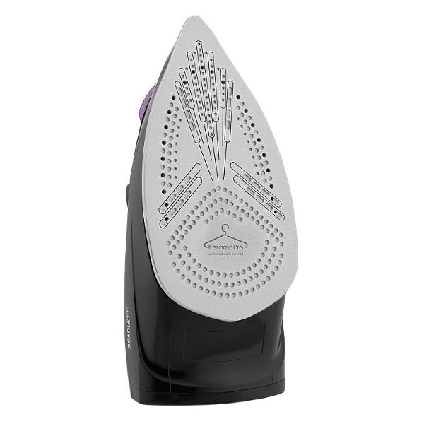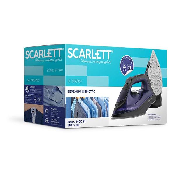 Утюг Scarlett SC-SI30K57 оснащен системой защиты от накипи и функцией самоочистки. Нагрев устройства до рабочей температуры происходит за 30 секунд. Скорость подачи пара можно регулировать до максимального значения 35 г/мин. Управление моделью осуществляется при помощи кнопок и механического переключателя. Установлен световой индикатор готовности к работе.