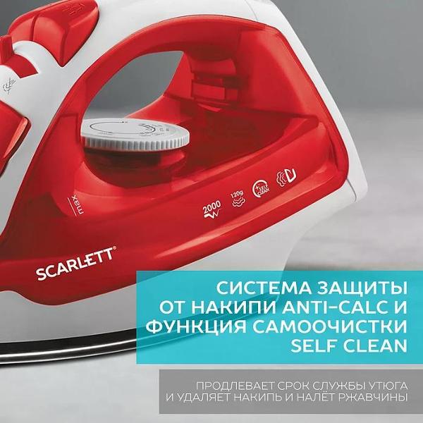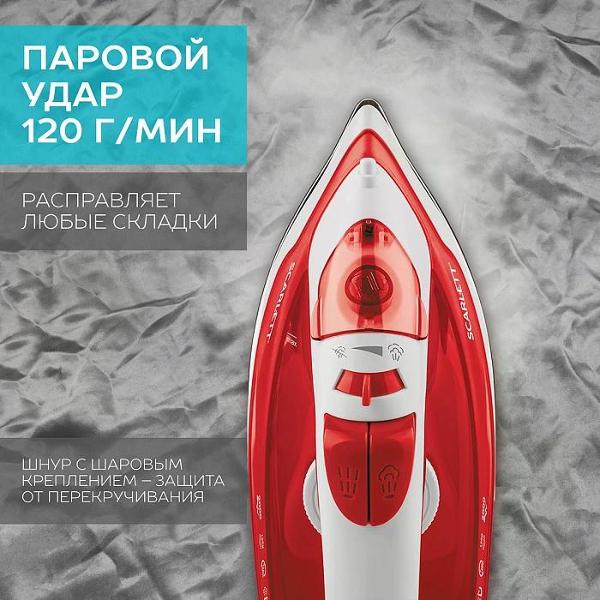 Утюг Scarlett SC-SI30S08 оснащен технологией парового удара, сила которого составляет 120 г/мин. Установлена металлическая подошва GlissAir, обеспечивающая эффективное разглаживание всех видов тканей. Система самоочистки позволяет быстро убрать накипь. Доступна работа в трех температурных режимах. Тип управления — механический.