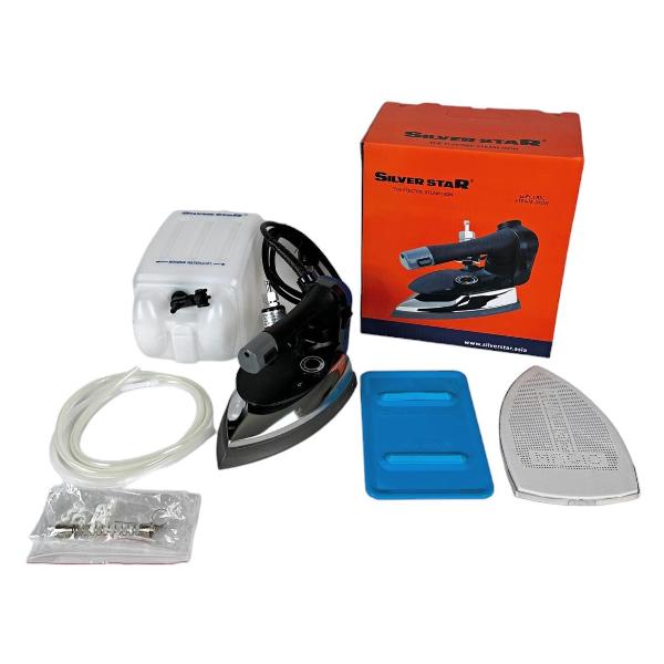 Утюг Silver Star ES-300L безопасен в эксплуатации благодаря двум клапанам регулирования подачи пара. Подходит для использования в химчистках, ателье, прачечных, школах шитья. Встроенный термостат позволяет производить температурные настройки в пяти режимах. Управление — механическое. В модели поддерживаются функции контроля оптимальной температуры (диапазон — от 35°С до 220°С), вертикального отпаривания, ионизации пара, встроена противокапельная система.