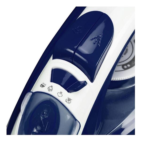 Подошва утюга выполнена из керамики, обеспечивающей легкое скольжение и защиту тканей от повреждений. Желобок для пуговиц облегчает глажку сложных участков одежды. Прибор предусматривает систему защиты от накипи и функцию самоочистки. Противокапельная система предотвращает попадание воды на ткань во время глажки.