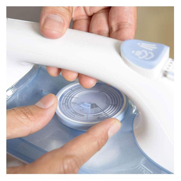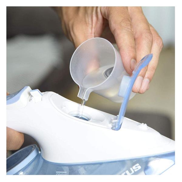 Модель снабжена опциями «Самоочистка», «Антинакипь». Присутствует защита от попадания капель («Антикапля»). Безопасность использования обеспечивают системы защиты от перегрева и автоматического отключения. Утюг справляется со всеми типами ткани и складками любой сложности благодаря функциям вертикального отпаривания, парового удара (170 г) и увлажнения. Длина сетевого кабеля с шаровым креплением составляет 2 м. В комплектации поставляется стакан с мерной шкалой.
