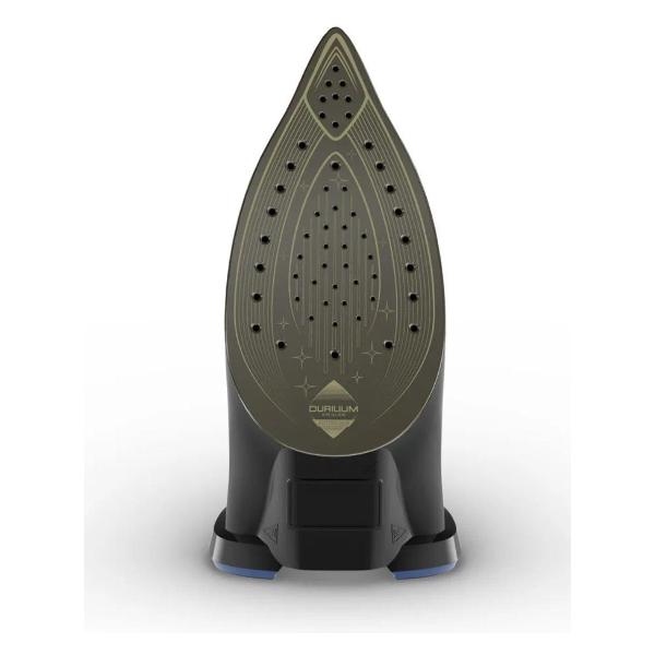 Настройку проводят посредством кнопки и круглого регулятора. Длительную и бесперебойную эксплуатацию обеспечивает опция самоочистки, препятствующая отложению накипи на элементах. Сила пара корректируется до 60 г/мин. Предельное давление — 5 бар. Модель укомплектована противокапельной системой. Корпус изготовлен из пластика. Подошва сделана из керамики. Вес — 2,5 кг.