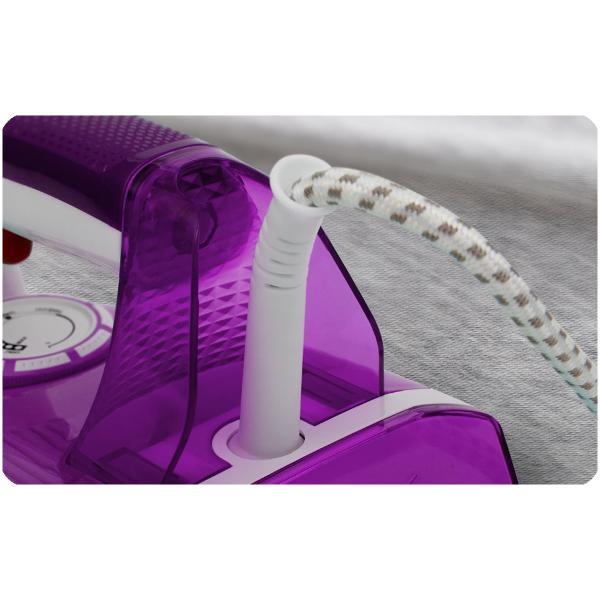 Утюг Vail VL-4003 фиолетового цвета обладает габаритами 30х12х12,5 см и массой 1,1 кг. У устройства шаровое крепление шнура. В комплекте поставляется мерный стакан. Корпус изготавливается из пластика. На лицевой стороне размещаются индикаторы включения, уровня воды и готовности к работе. У устройства механический тип управления. Уровень потребляемой мощности не превышает 2,6 кВт.