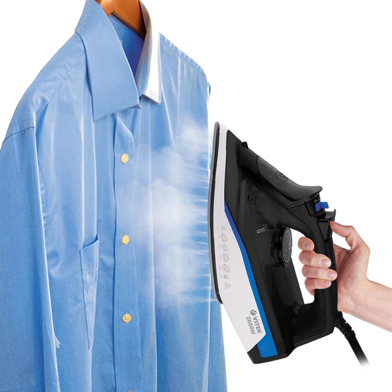 Утюг Vitek VT-8329 обладает мощностью 2600 Вт. Прибор используется для сухой глажки и отпаривания, в том числе вертикального. Интенсивность подачи пара настраивается от 35 г/мин до 145 г/мин. Функция «Антикапля» и система защиты от накипи предотвращают появление на ткани пятен и разводов. Разбрызгиватель поможет без усилий устранить сложные складки и быстро привести в порядок пересушенное белье.