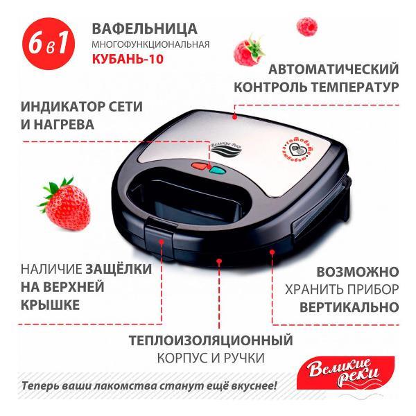 Вы можете купить Вафельница Великие Реки Кубань-10 в магазинах М.Видео по доступной цене. Вафельница Великие Реки Кубань-10: подробное описание, фото и отзывы реальных покупателей, характеристики, возможность скачать инструкции и подобрать аксессуары.