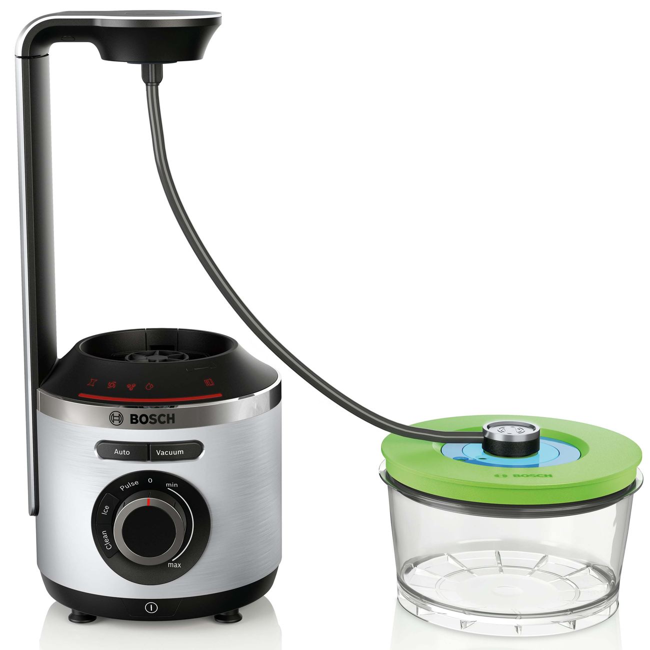 Bosch MMZV0SB2 – комплект из двух вакуумных контейнеров. Он используется с совместимыми блендерами и предназначен для транспортировки и длительного хранения продуктов и готовой пищи.