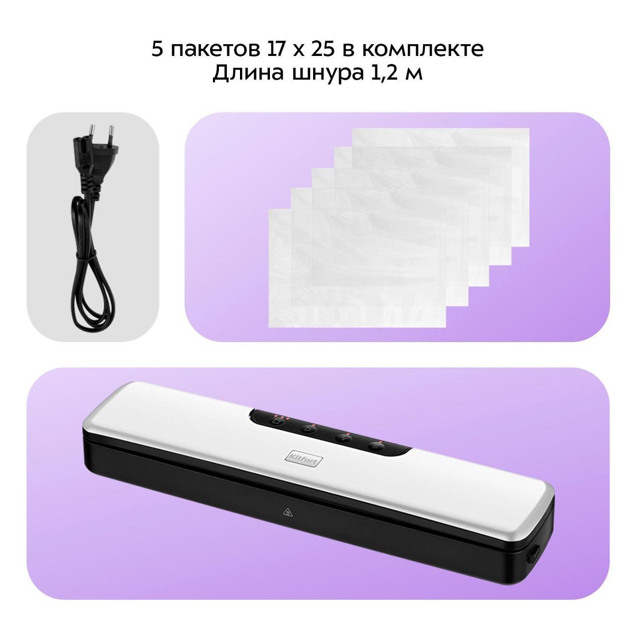 Вы можете купить Вакуумный упаковщик Kitfort КТ-1551 в магазинах М.Видео по доступной цене. Вакуумный упаковщик Kitfort КТ-1551: подробное описание, фото и отзывы реальных покупателей, характеристики, возможность скачать инструкции и подобрать аксессуары.