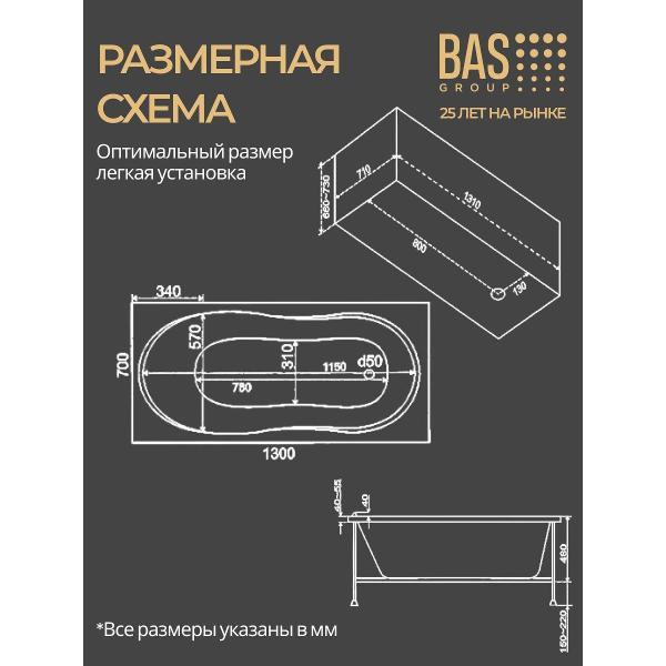 Акриловая ванна BAS «Ника» 130×70 см представляет собой функциональное и эстетически привлекательное решение для ванных комнат. Размеры 1300×700 мм делают изделие универсальным для различных пространств, от компактных до более просторных. Прямоугольная форма и пристенное расположение гармонично вписываются в любой интерьер, обеспечивая комфорт при использовании.