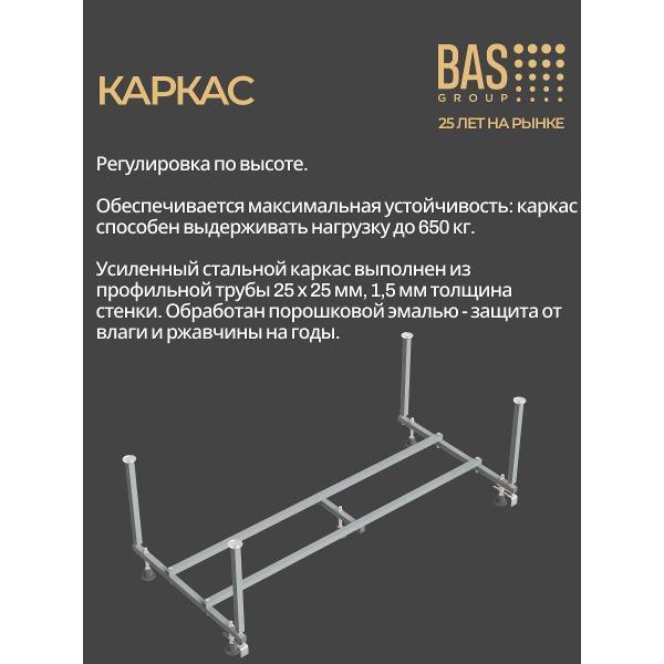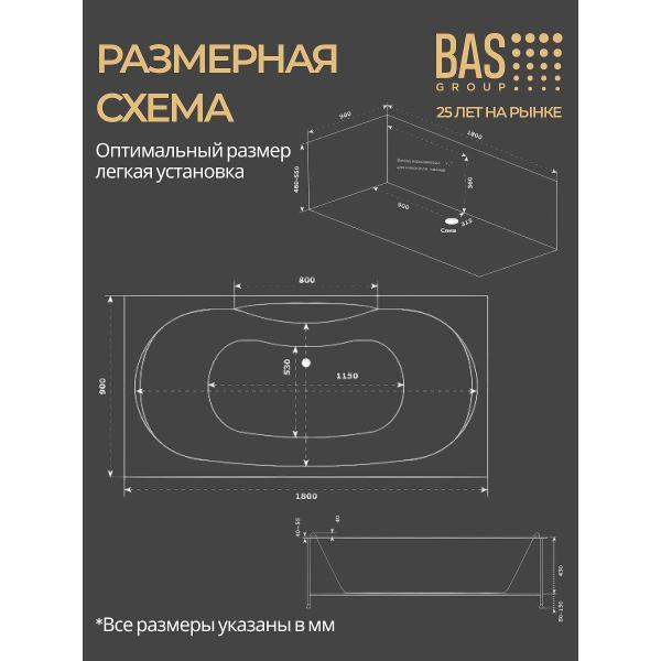 Акриловая ванна BAS «Канди» размером 1800×900 мм комплектуется каркасом, что обеспечивает быструю и удобную установку. Ванна выполнена из гомогенного европейского акрила толщиной 4-5 мм, устойчивого к царапинам и повреждениям, что гарантирует длительный срок службы. Регулируемый по высоте каркас позволяет адаптировать изделие под особенности помещения и предпочтения. На поверхности нанесено антибактериальное покрытие «Antibac», обеспечивающее гигиеничность и защиту от бактерий, что облегчает уход за изделием. Глянцевая поверхность хорошо моется и долго сохраняет внешний вид без потускнения. Высокое теплоизоляционное свойство сохраняет температуру воды дольше, увеличивая комфорт при использовании. В конструкцию включены горизонтальные наклонные поверхности, препятствующие скоплению воды и грязи, а внутреннее пространство с симметричными выступами для головы и сливом в центре подходит для установки с любой стороны. Дно с противоскользящим покрытием повышает безопасность при влажных условиях. Стильный дизайн и практичные технические решения делают ванну подходящей для современных ванных комнат, сочетая функциональность и эстетичность.