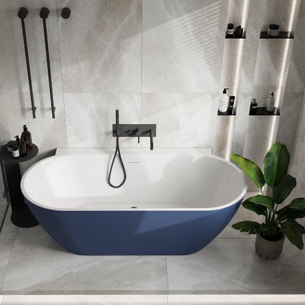 Наименование изделия: Ванна акриловая пристенная Teymi Aina 170x80x56, синяя матовая. Артикул производителя: T130120. Коллекция акриловых ванн: AINA. Штрихкод товара: 4673742593251. Характеристики: -- Тип изделия: ванна пристенная; -- Материал изготовления: акрил; -- Покрытие внутренней поверхности: глянцевое; -- Цвет внутренней поверхности: белый; -- Покрытие внешней поверхности: матовое; -- Цвет внешней поверхности: синий; -- Длина: 1700 мм; -- Ширина: 800 мм; -- Высота: 560 мм; -- Тип установки: на пол, на ножки; -- Монтаж ножек: на усиленные ребра на днище ванны, скрытый монтаж; -- Регулировка ножек по высоте: да; -- Ножки в комплекте: да; -- Наличие кромки: нет; -- Стиль дизайна: современный; -- Форма: овальная; -- Выпуск: отверстие 50 мм; -- Встроенный перелив: да; -- Пластиковая сливная труба в комплекте: да; -- Выпускной клапан клик-клак в комплекте: да; -- Цвет крышки выпускного клапана: белый глянцевый; -- Пробка в комплекте: нет; -- Гарантия: 5 лет; -- Страна производства: Китай; -- Страна бренда: Финляндия; -- Бренд: Teymi; -- Модельный ряд: AINA; -- Модель: AINA T130120. Упаковка: Гофрокартон, стретч, вспененный полиэтилен. Может быть закрыт обрешёткой. Размер упаковки: 1740 × 840 × 610 мм Размер упаковки с обрешёткой: 1780 × 880 × 650 мм Вес нетто: 38200 г / 38,2 кг Вес в упаковке: 39600 г / 39,6 кг Вес в упаковке с обрешёткой: 44100 г / 44,1 кг