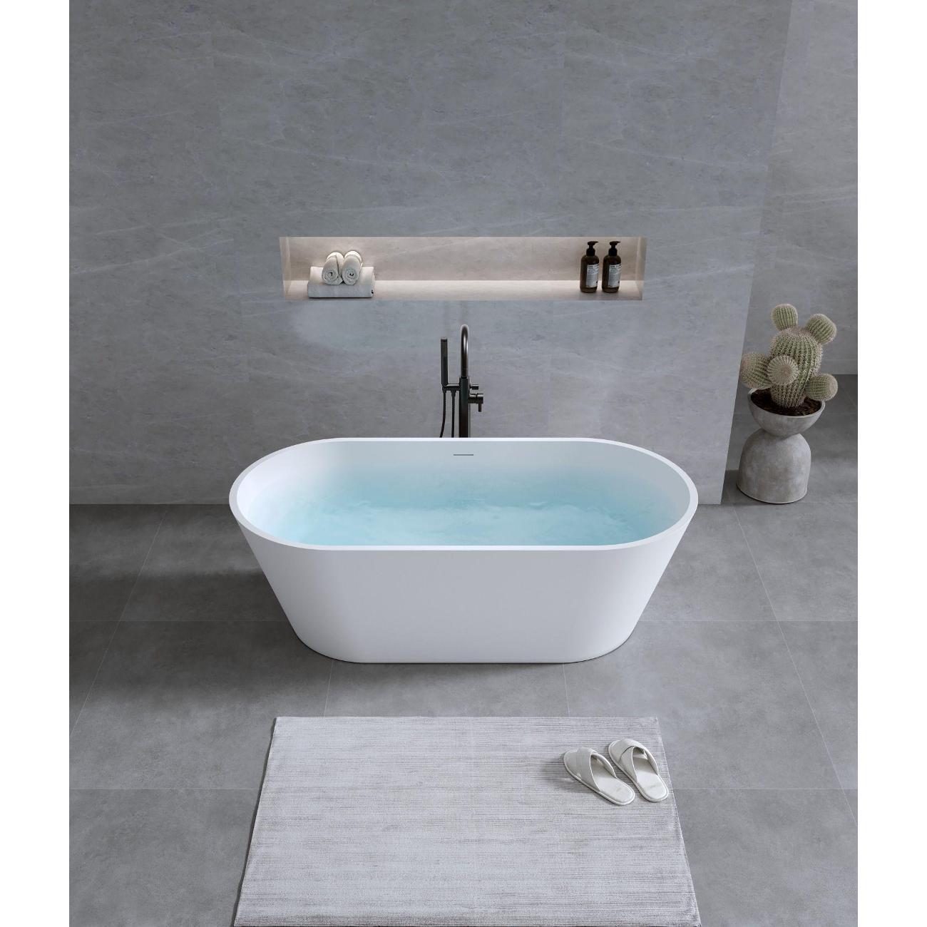 Поверхность ванны приятная на ощупь и не холодная благодаря низкому уровню теплопроводности, что делает процесс эксплуатации очень приятным.