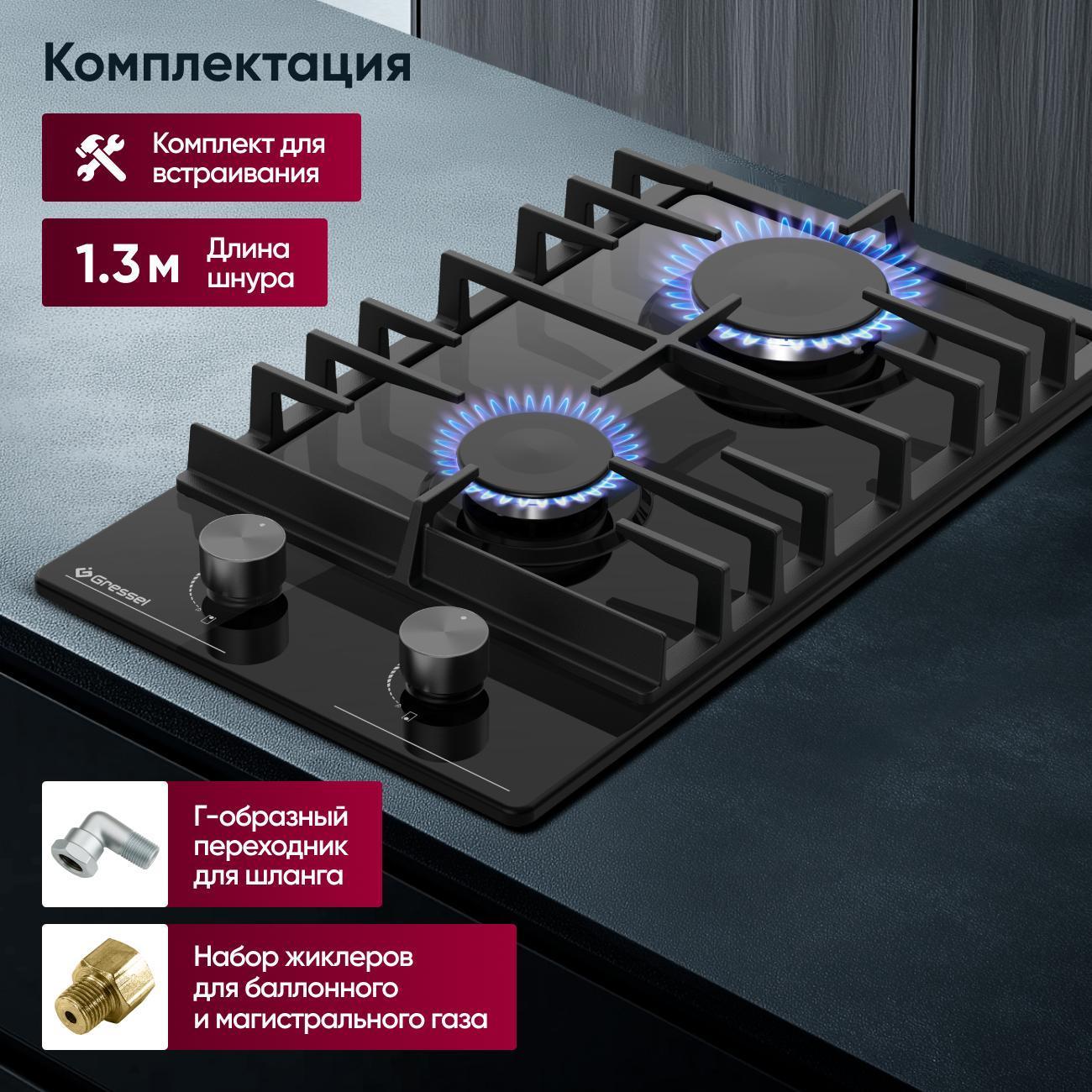 Крутилки работают плавно, без рывков, менять интенсивность пламени удобно. Для блюд, требующих деликатного нагрева (например, соусов или молочных каш), это самое то. Нет риска, что перекрутишь. Даже на минимальном режиме конфорка горит стабильно, не тухнет. Переживала, что на узкой панели кастрюли будут стоять ненадежно. Но нет, все нормально. Чугунные решетки с дополнительными ребрами жесткости держат посуду отлично, большие кастрюли не качаются, не скользят. Можно спокойно перемешивать блюдо. Муж ее ставил сам, без мастеров. В комплекте есть все нужные детали: переходник для шланга, жиклеры, инструкция с понятными схемами. Шнур длинный
