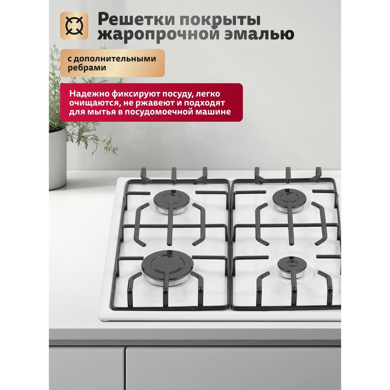 При выборе ориентировалась на турецкую сборку и гарантию 5 лет. Панель белая, глянцевая — выглядит нежно и аккуратно, в отличие от черной, на белой не так видно разводы. Конфорок четыре, все с автоподжигом — удобно, не нужны спички. Решетки эмалированные, устойчивые, мыть легко. Управление сбоку — привычное расположение, не перепутаешь. В эксплуатации простая, нареканий нет. Стильная и надежная техника за свои деньги.