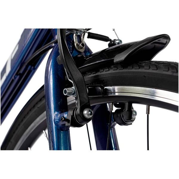 Рама размером 18" выполнена из высокопрочного алюминия, стойкого к механическим повреждениям и ржавлению. Колеса диаметром 28" дополнены резиновыми покрышками шириной 1". Доступен 21 скоростной режим. Безопасность обеспечивается благодаря двум фонарям и отражателям, интегрированным в платформы педалей.