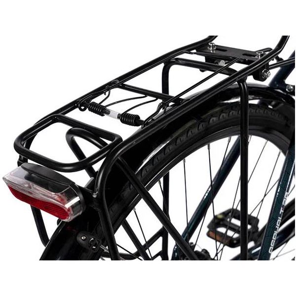 Основание выполнено из прочного алюминия, не подверженного образованию коррозии. Этот материал отличается легкостью ― вес байка равен 17 кг. Конфигурацией предусмотрены механические дисковые тормоза, рама размером 20", подножка, багажник, передний и задний фонари. Подъем руля изменяется при необходимости.