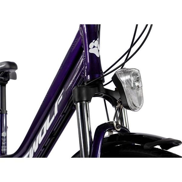 Конфигурацией предусмотрены жесткая вилка, механические дисковые тормоза и система освещения. Установлены колеса диаметром 28". Они подкачиваются с помощью автомобильного насоса благодаря специальному нипелю, не требующему переходников. Размер рамы равен 16". Удлиненные крылья предотвращают загрязнения. Подножка делает возможной стоянку в любом месте. Для перевозки малогабаритного груза есть багажник.
