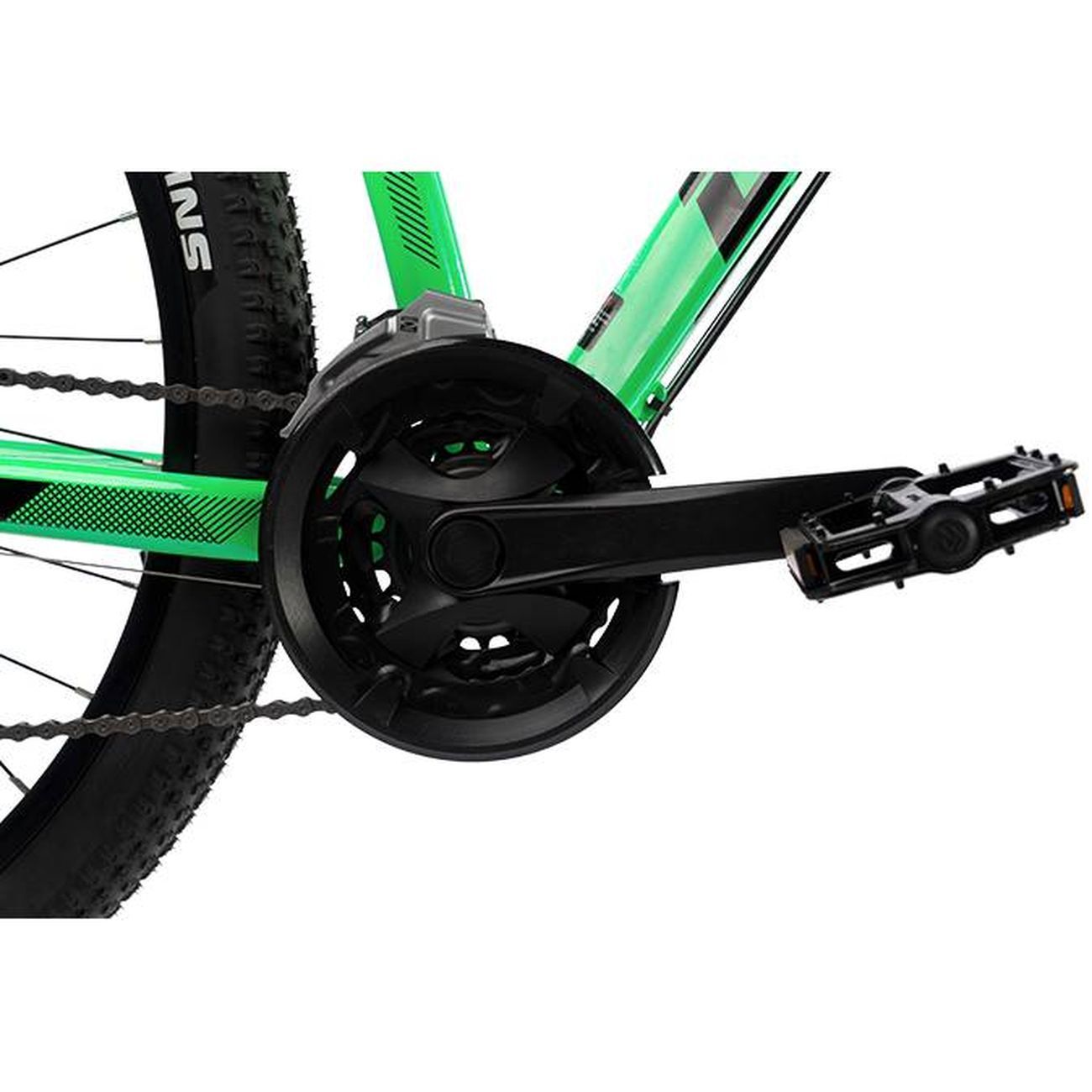 Неровности сглаживаются за счет пружинной вилки. Ее жесткость регулируется, также доступна блокировка. Гидравлическая дисковая система тормозов позволяет при любых погодных условиях быстро и безопасно остановиться. Установленный переключатель дает возможность оперативно настроить параметры катания. Предусмотрены 27 скоростей.