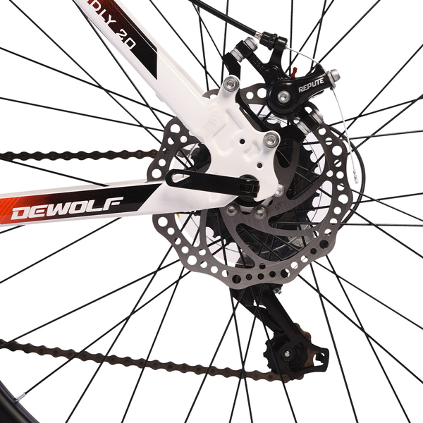 Велосипед Dewolf Ridly 20 ― горная модель с 21 скоростью. Он подходит для активной езды по неровной поверхности. Рама размером 16" изготовлена из прочного алюминиевого сплава, не подверженного образованию коррозии. Этот материал отличается легкостью, что гарантирует маневренность конструкции и вес 15,5 кг. Пружинная вилка обеспечивает комфорт при катании.