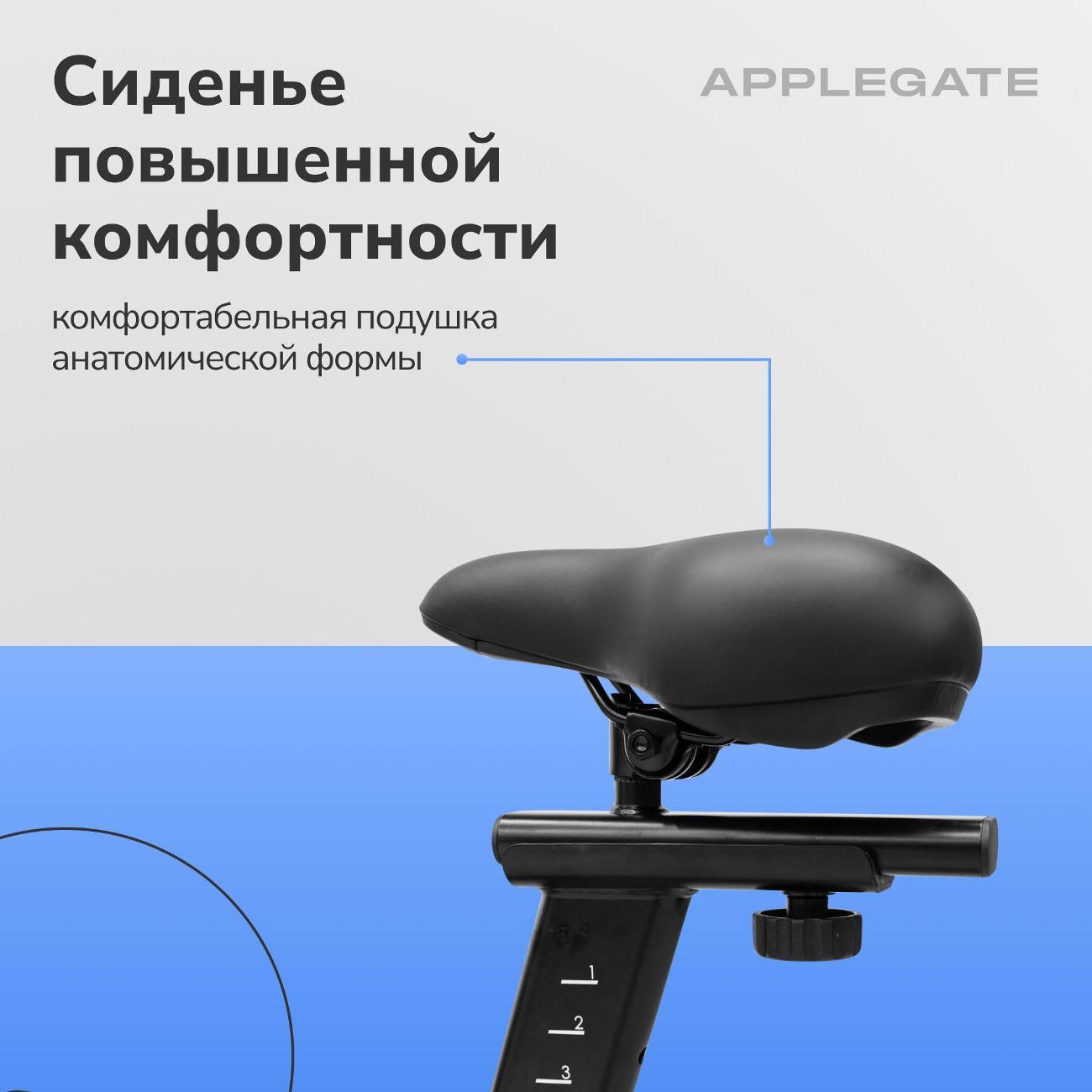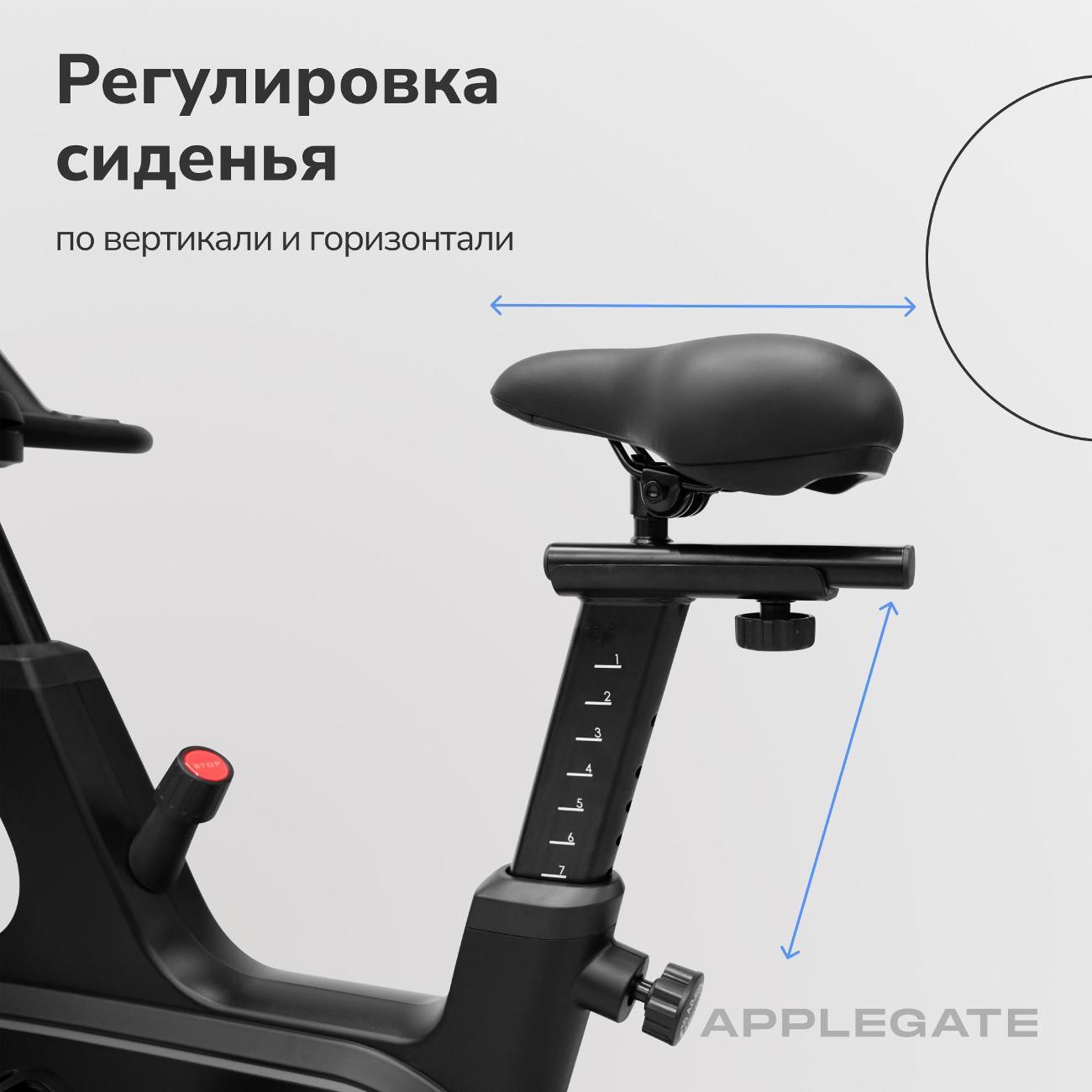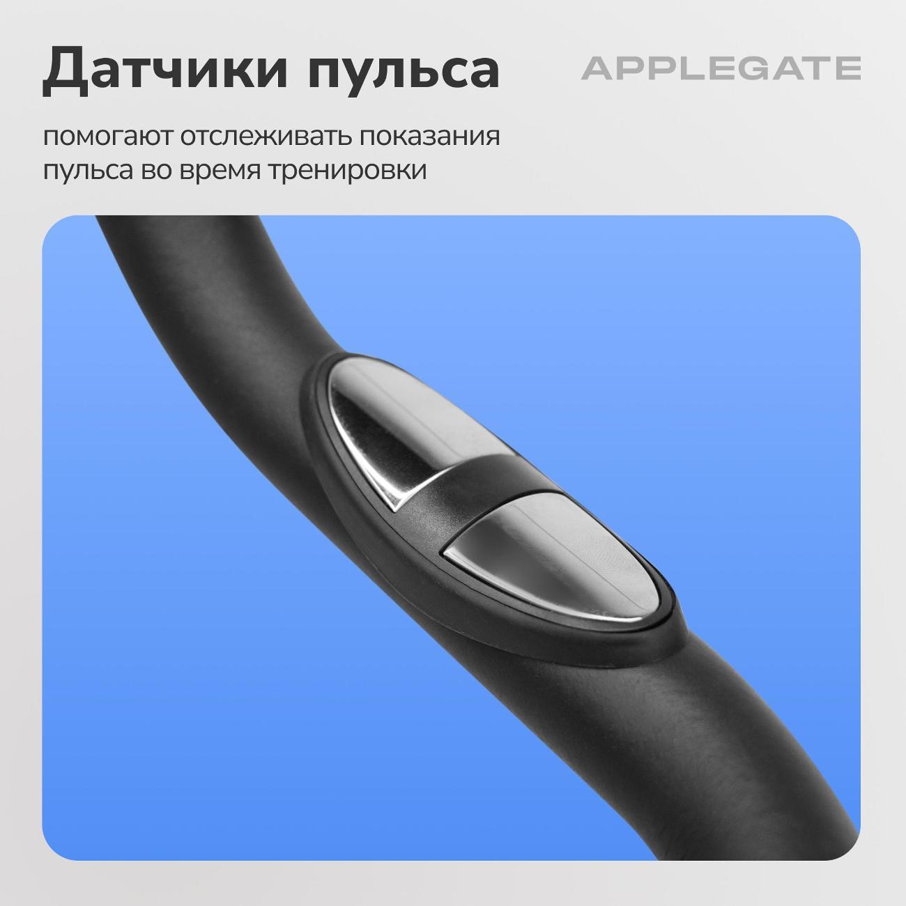 Велотренажер Applegate Cosmocycle в корпусе черного цвета рассчитан на вес пользователя до 135 кг. В память заложены семь тренировочных программ с 32 уровнями нагрузки. Модуль Bluetooth отвечает за синхронизацию с мобильными устройствами для работы в приложении.