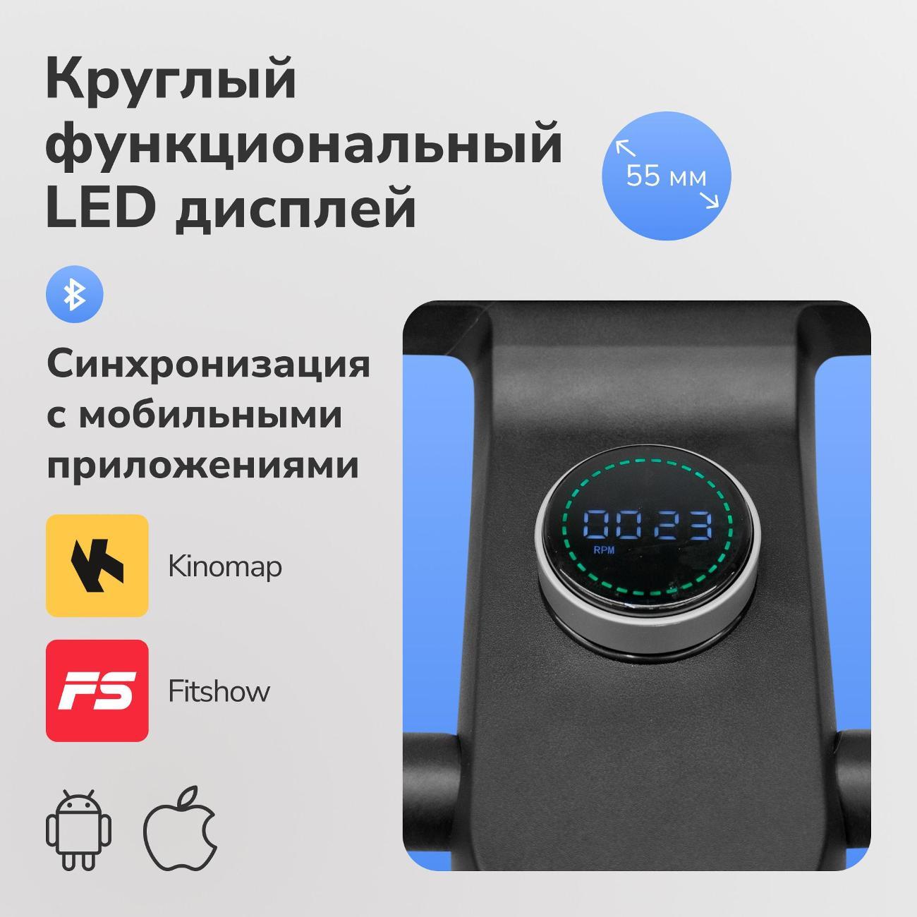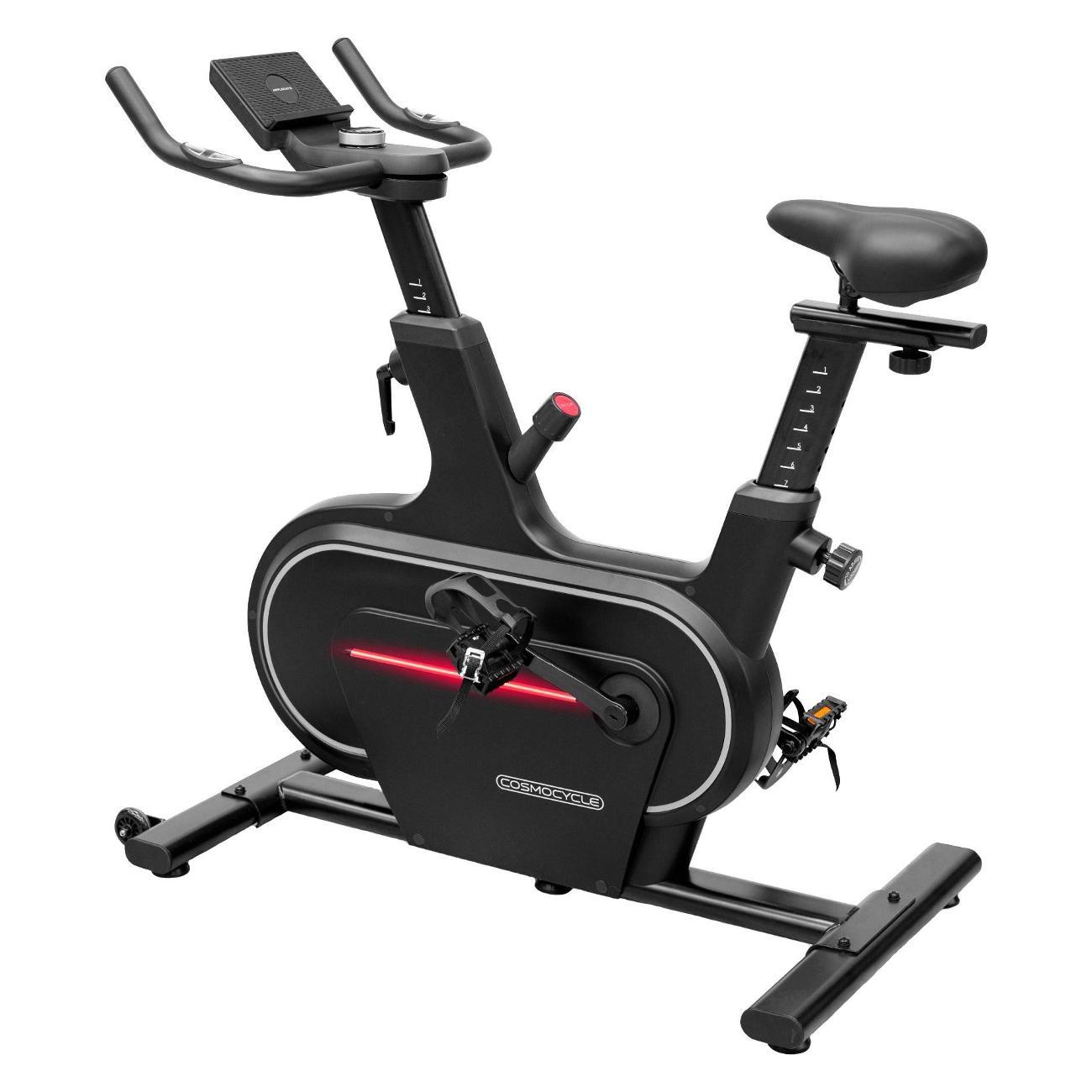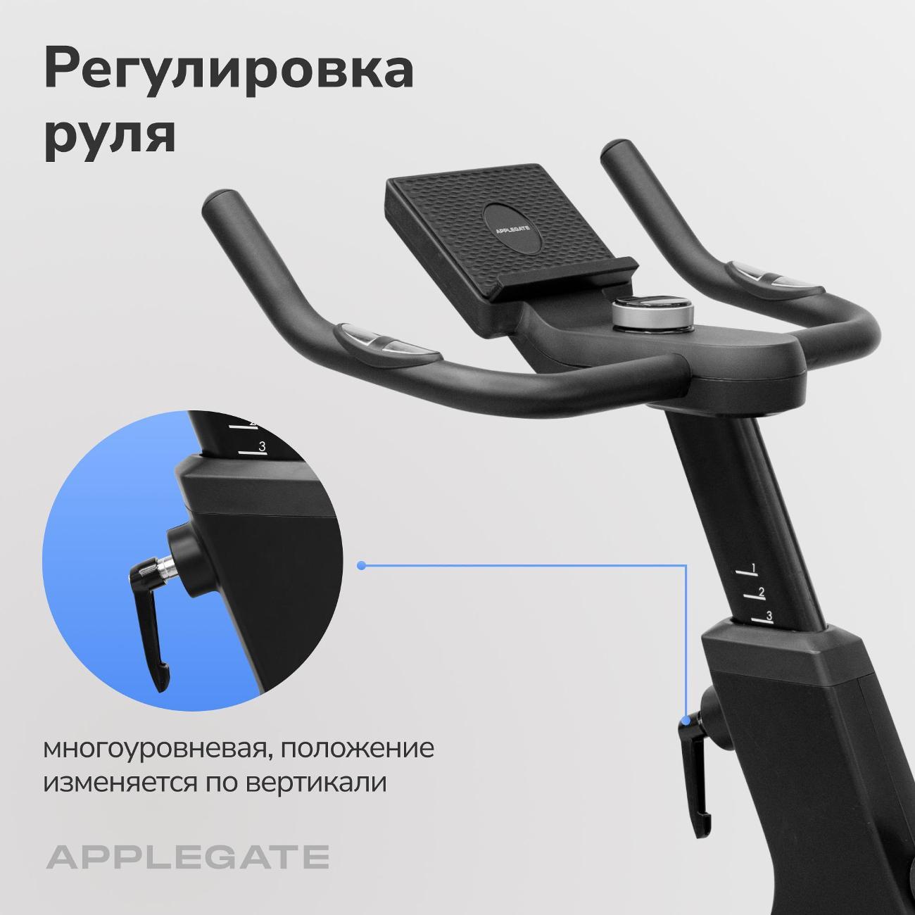 Велотренажер Applegate Cosmocycle в корпусе черного цвета рассчитан на вес пользователя до 135 кг. В память заложены семь тренировочных программ с 32 уровнями нагрузки. Модуль Bluetooth отвечает за синхронизацию с мобильными устройствами для работы в приложении.