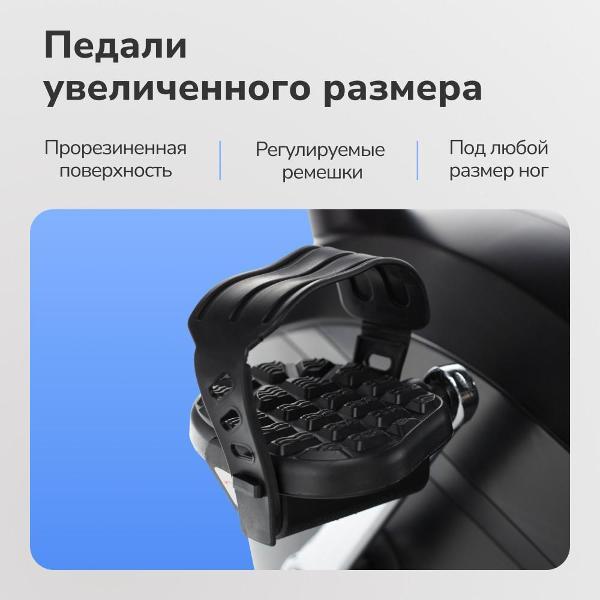 Сиденье, с подушкой анатомической формы и регулировкой положений обеспечит комфорт использования. Для удобства предусмотрены ручки около сидения. Прорезиненные педали с крепление защищают от скольжения фиксируя стопу, сокращаю травматизм во время занятий. Во время тренировки можно смотреть видео или слушать любимую музыку, на корпусе предусмотрена подставка под планшет либо смартфон. Доступна интеграция с мобильным приложением Fitshow.