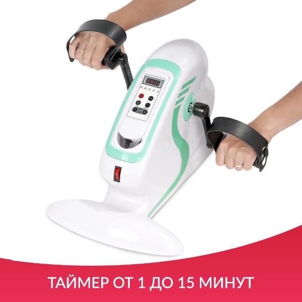 Электрический велотренажер «Армед» МС08 работает от электросети 220 В. Модель предназначена для разработки рук и ног, для реабилитации после травм и операций. Максимальный вес на одну педаль не должен превышать 20 кг. Присутствует пять автопрограмм. Благодаря самостоятельному ходу педалей тренажера происходит щадящая нагрузка на конечности с постепенным укреплением мышц. Доступен выбор из 12 скоростей.