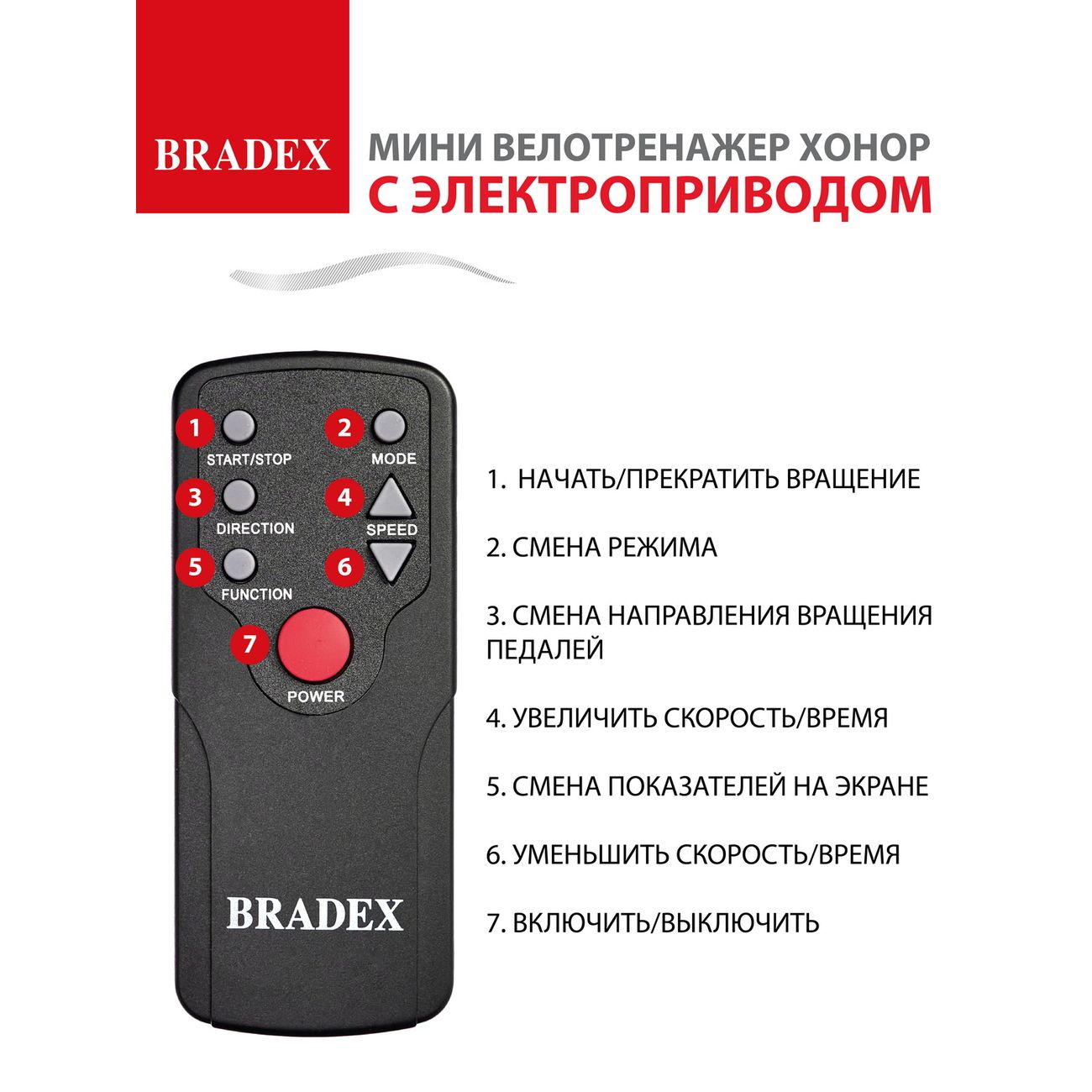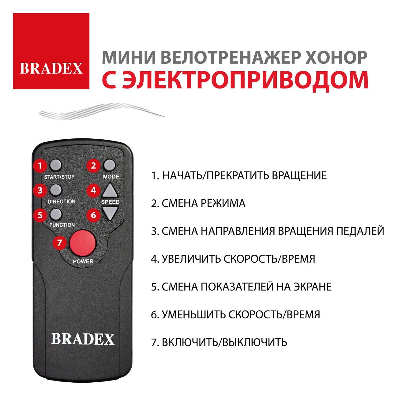 Велотренажер Bradex Хonop SF 1032 предназначен для проведения тренировок в домашних условиях. Питание производится от сети. Потребляемая мощность составляет 60 Вт. Конструкция способна выдерживать до 120 кг. На выбор предлагаются четыре режима. Ручной дает возможность настроить параметры в соответствии с индивидуальными предпочтениями. Предусмотрена поддержка 20 уровней скорости, которые позволяют настраивать интенсивность тренировки.