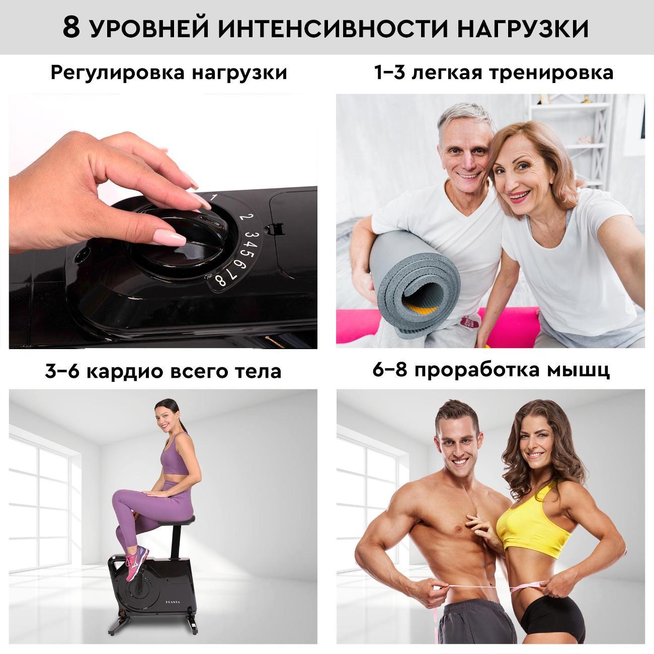 Всё было бы в этом тренажёре хорошо, если бы на редкость не удачное сиденье. Сидеть на нём , возможно, комфортно, но крутить педали нет. Его ширина в самом узком месте 10 см, форма отличается от седла велосипеда ( она не обтекаемая). Я сломалась на 30 минуте , хотя обычно кручу педали час. Дисплей маленький и данные на нем плохо видно, но это плата за компактность. Тихий. Можно ползоваться сидя на стуле, но нагрузка будет уже не та. Планирую поставить под рабочий стол, а дома продолжу использовать старенький torneo.