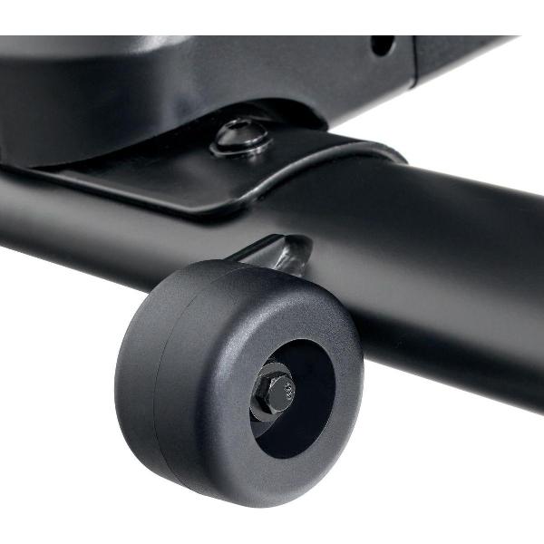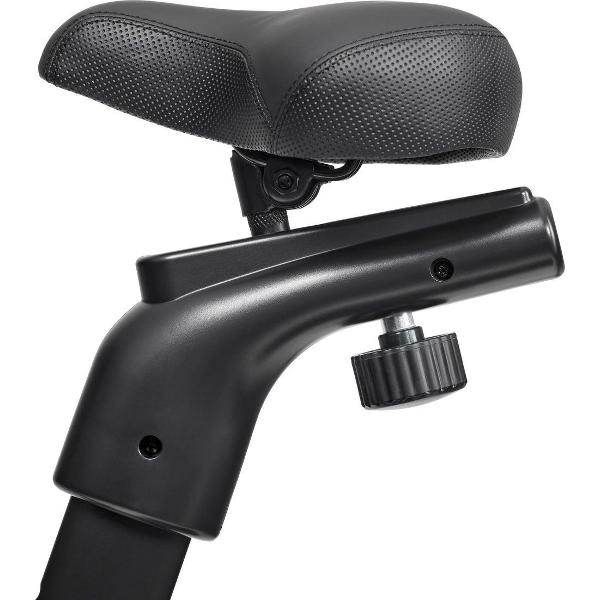 Вес маховика составляет 19,8 кг. Все основные данные (пульс, расход калорий, скорость, расстояние) выводятся на яркий дисплей. Для размещения смартфона или планшета предусмотрена подставка. Встроенный генератор гарантирует энергонезависимость, благодаря чему для работы велотренажер не требуется подключать к источнику электропитания.