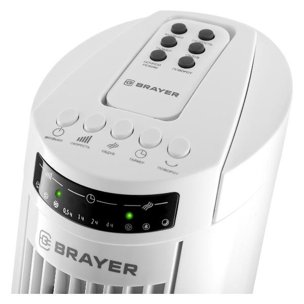 Колонный вентилятор Brayer BR4958WH — компактный прибор высотой 74 см, предназначенный для напольного размещения и эффективно справляющийся с циркуляцией воздуха в жилых комнатах.