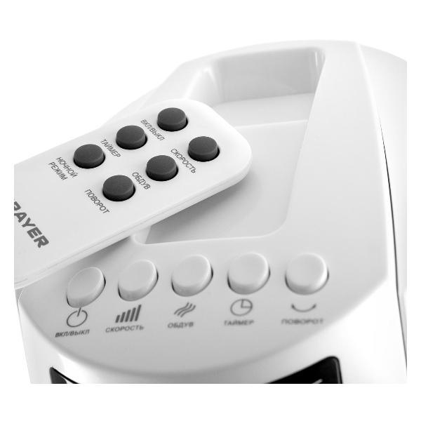 В комплекте идет компактный пульт ДУ, дублирующий функционал кнопок на корпусе. Для хранения аксессуара предусмотрен специальный отсек в верхней части вентилятора, чтобы пульт всегда был под рукой.