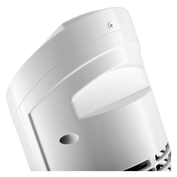 Конструкция высотой 74 см оснащена удобной ручкой, интегрированной в заднюю панель. Легкий вес позволяет без усилий перемещать устройство между гостиной, кухней и детской. Уровень шума при работе составляет 55 дБ. Предусмотрена надежная защита от перегрева.