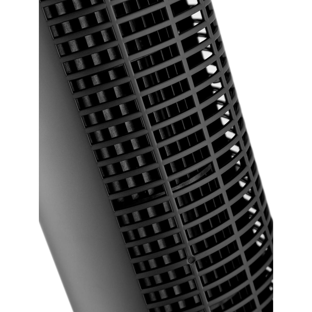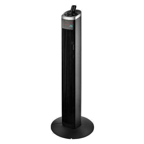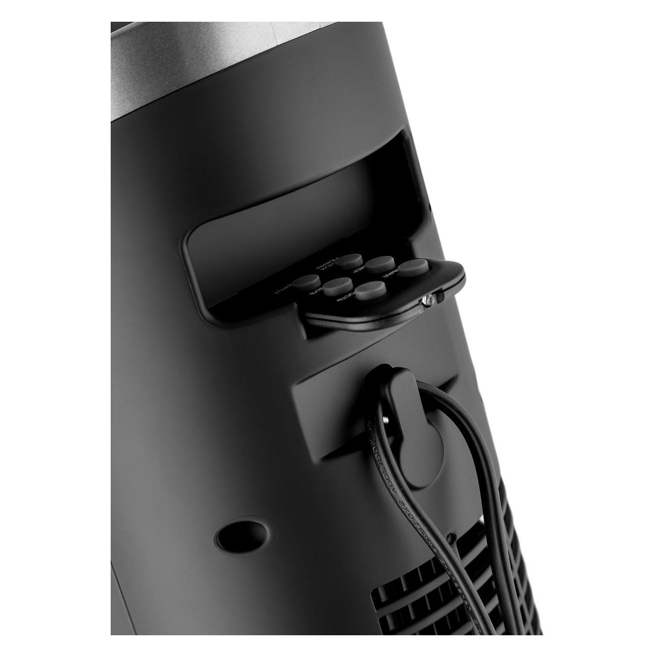 В комплекте поставляется пульт дистанционного управления, для которого в корпусе вентилятора сделана специальная ниша для хранения. Для удобного перемещения высокой конструкции (94 см) предусмотрена эргономичная ручка, интегрированная в дизайн. Уровень шума при работе не превышает комфортные 55 дБ.