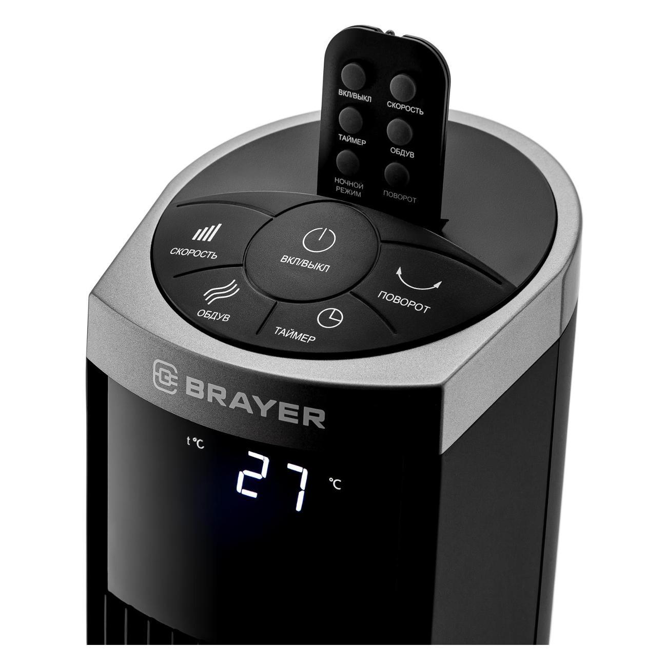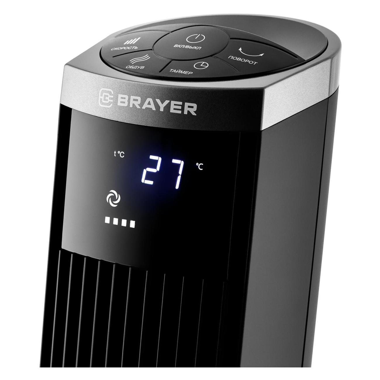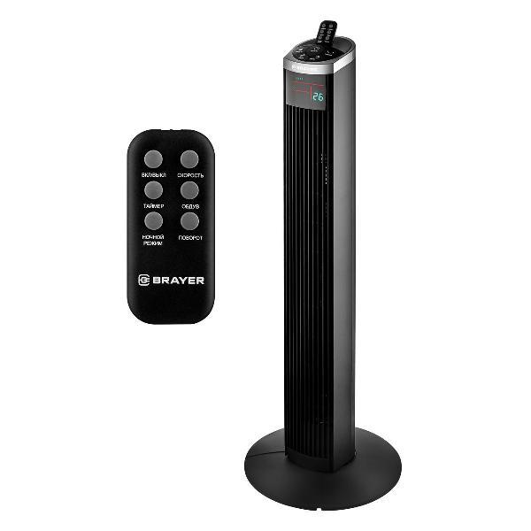 Колонный вентилятор Brayer BR4975 позволяет гибко регулировать интенсивность обдува благодаря трем скоростным режимам и функции автоматического вращения корпуса.