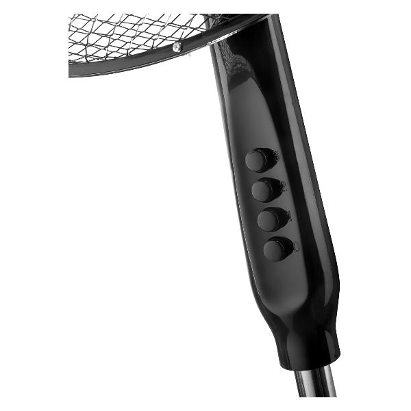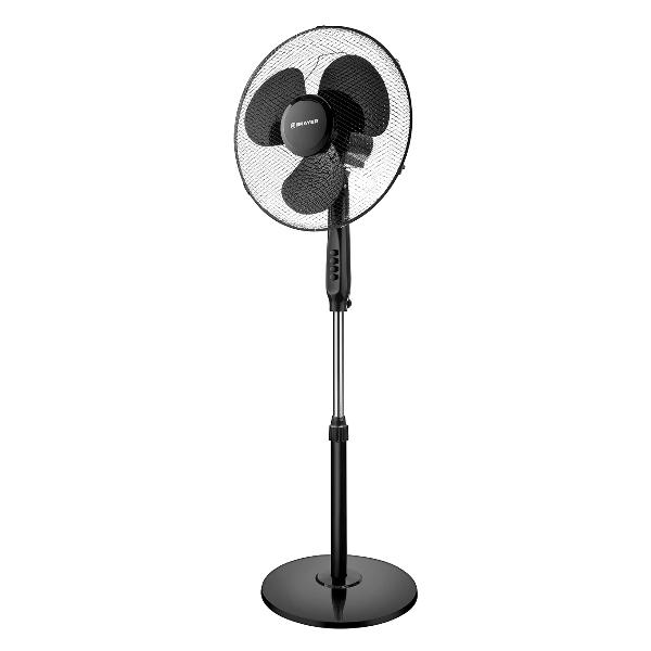 Вентилятор напольный Brayer BR4961BK черного цвета оснащен тремя прочными лопастями из полипропилена. Управление ручное, интуитивно понятное. Воздушный поток поступает на одной из трех скоростей для настраивания интенсивности обдува. Корпус модели вращается в автоматическом режиме на 75°. Мощность прибора — 40 Вт.