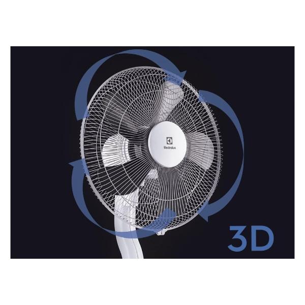Напольный вентилятор Electrolux EFF-1003D с механическим типом управления — на ножке встроен поворотный регулятор. Утяжеленное съемное основание не позволяет модели переворачиваться. Количество скоростей — три. Максимальная производительность составляет 2700 м³/ч. Равномерное распределение воздуха обеспечивают пять лопастей.